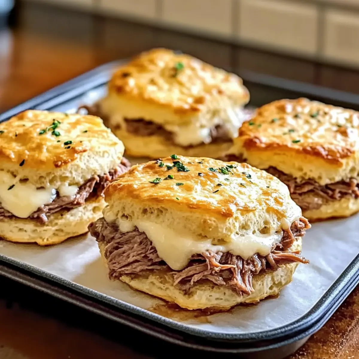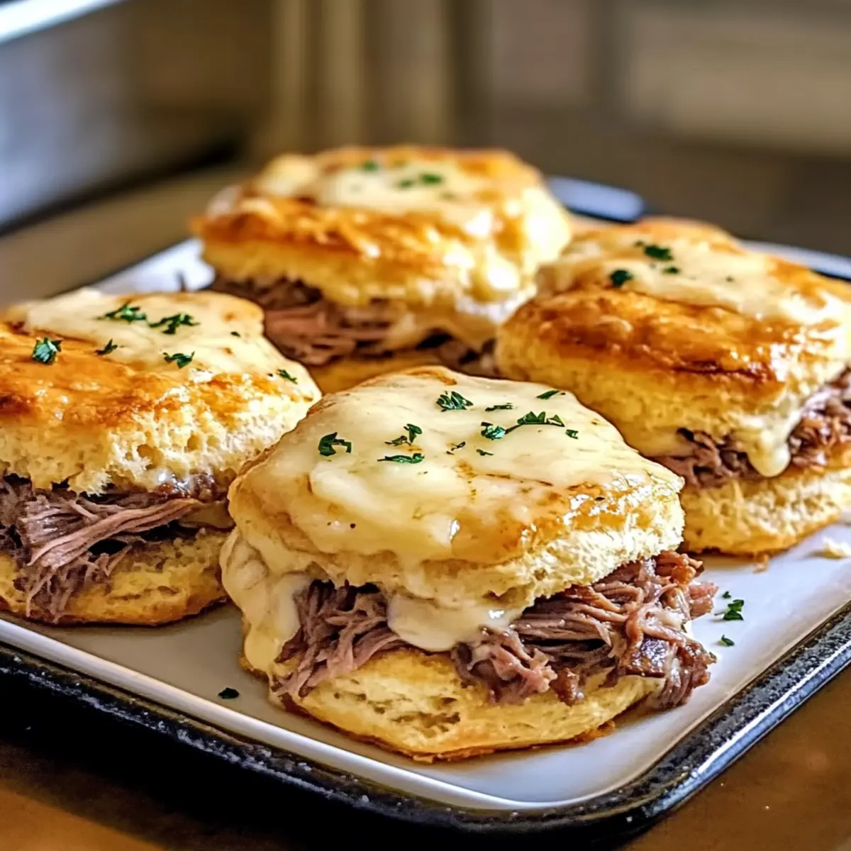Comforting Flavors: Baked French Dip Biscuits combine the heartiness of roast beef and the creaminess of melted cheese, creating a satisfyingly rich bite everyone loves.
