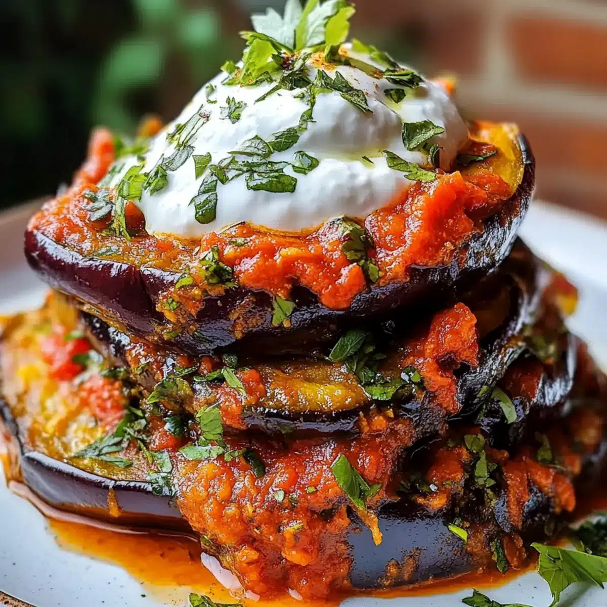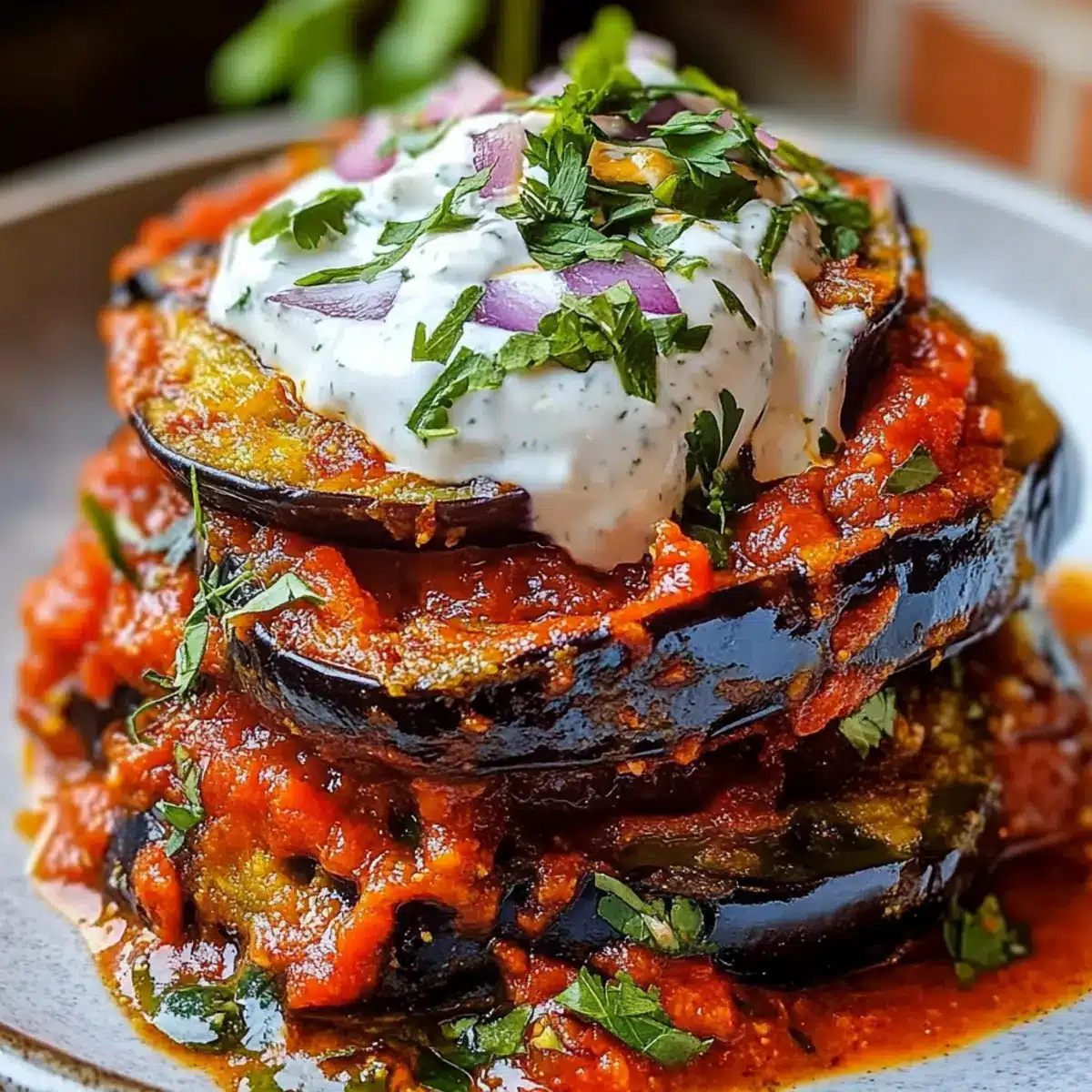 Fresh Herbs Matter: For the herbed yogurt topping, choose fresh parsley and mint; they will brighten the dish and add a burst of flavor that complements the savory eggplant.