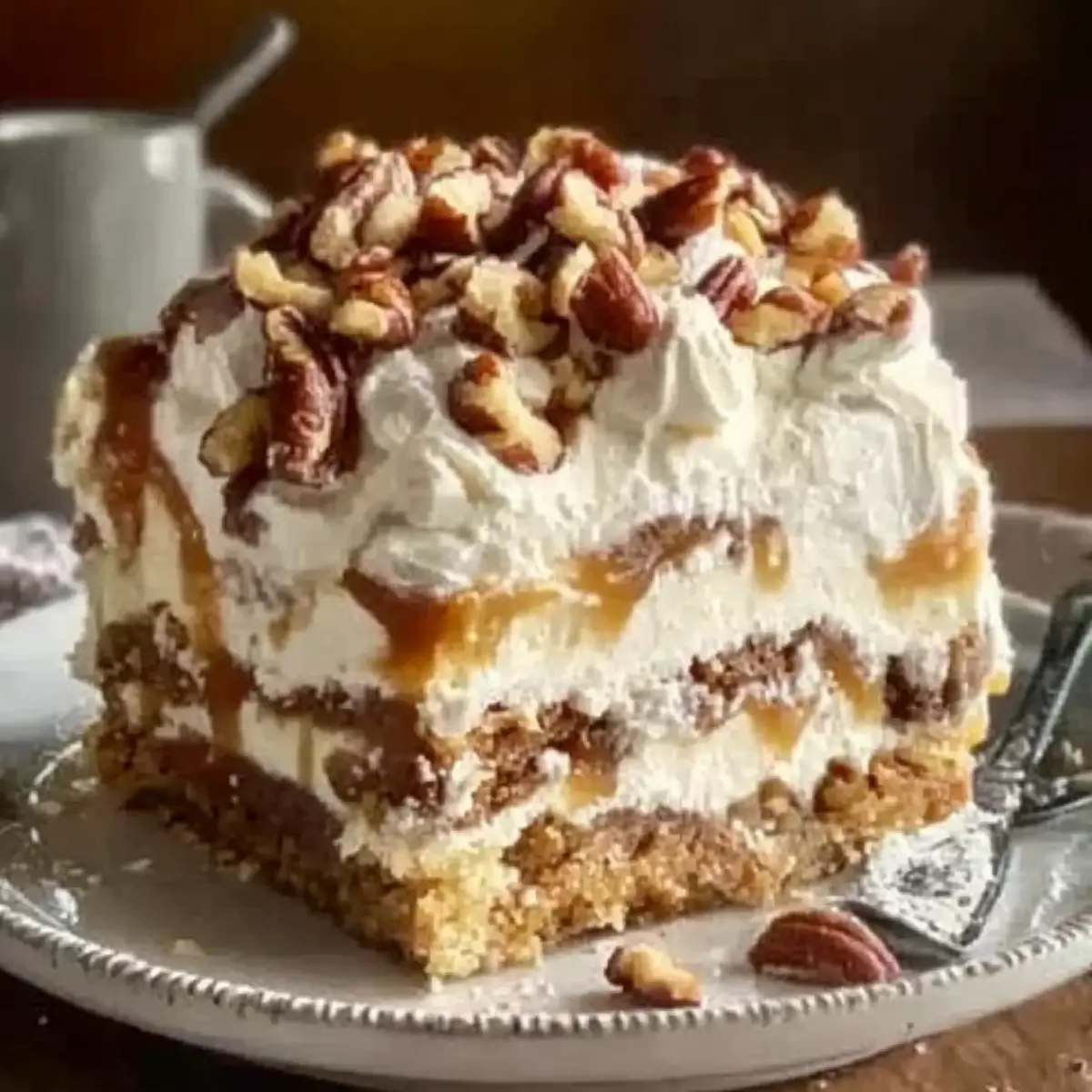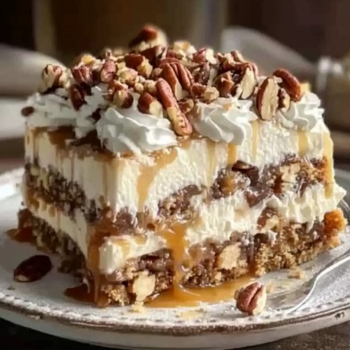 Caramel Sauce: Drizzling more caramel sauce over each slice can amplify the indulgent vibe of this dessert, making it irresistibly luxurious.