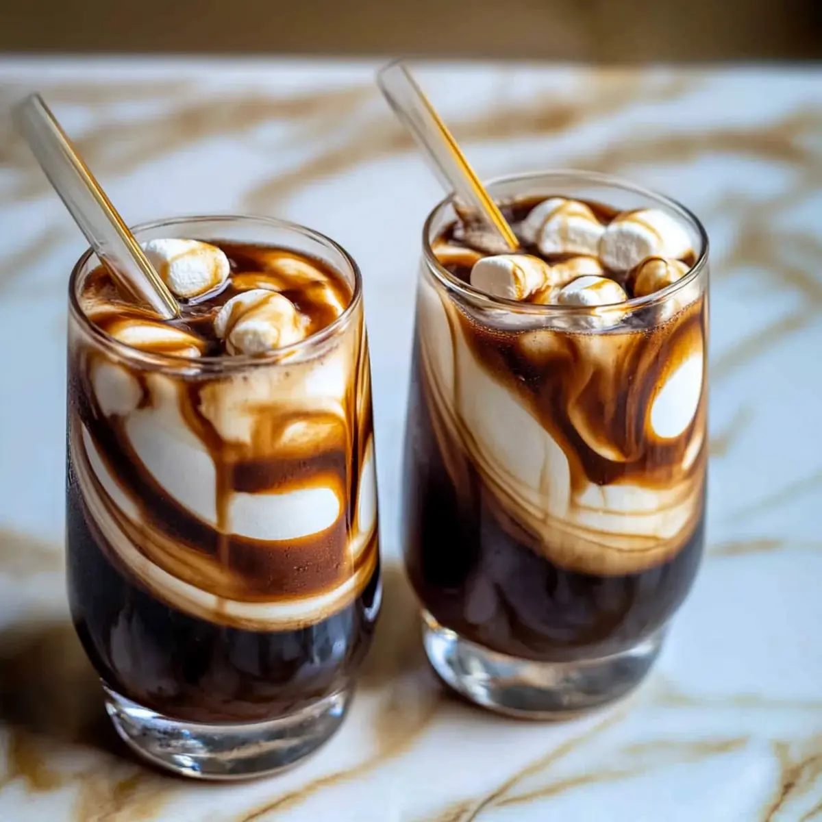 - Drizzle 2 tablespoons of toasted marshmallow syrup into each glass.