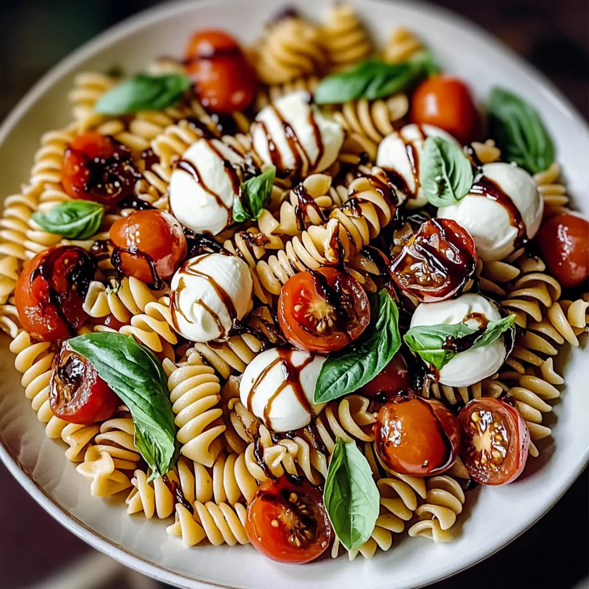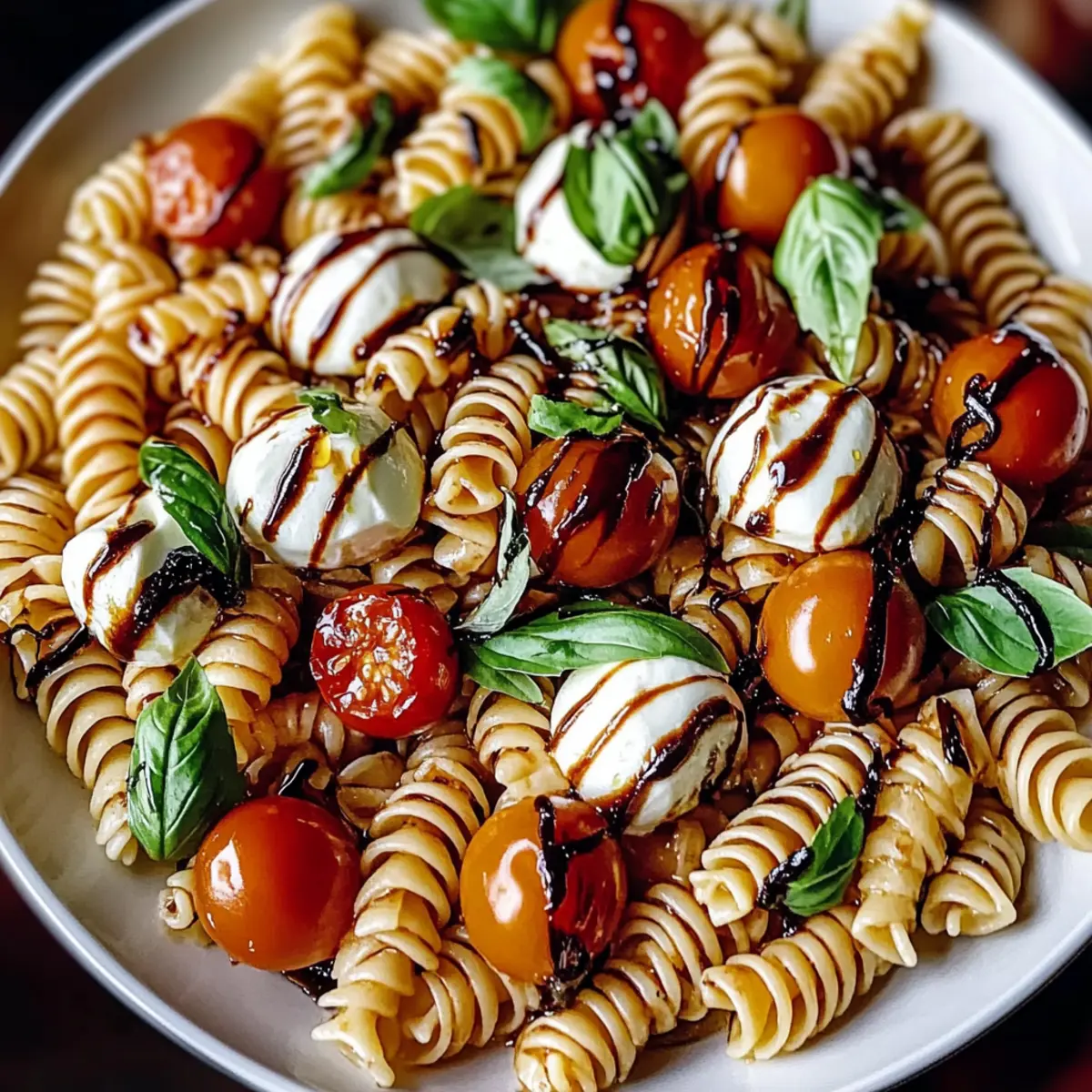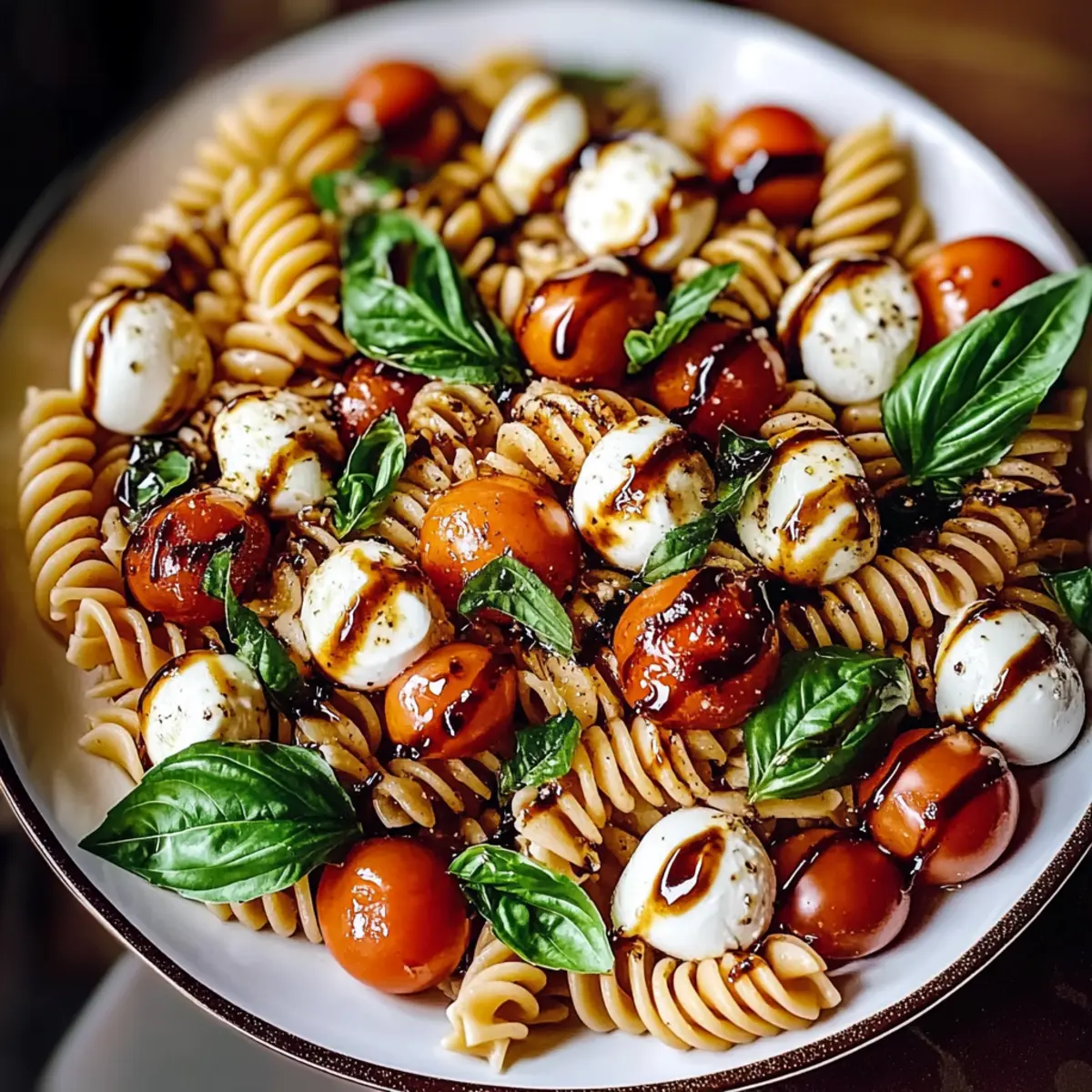 Refreshing Caprese Pasta Salad with Balsamic Glaze Delight