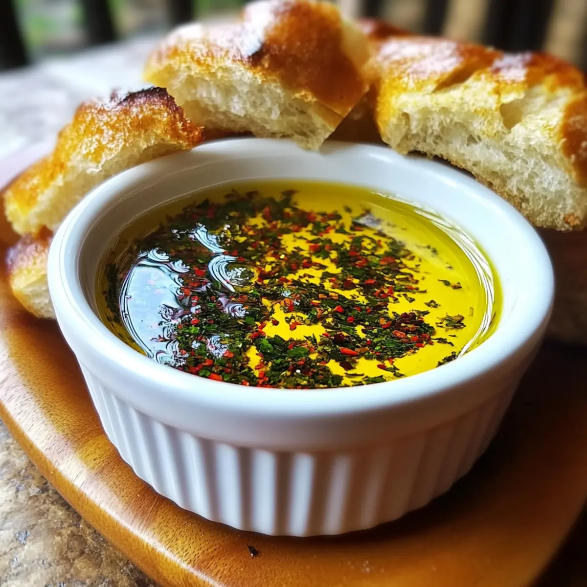 Spoon Before Serving: Give the oil a good stir before serving to ensure even distribution of herbs, presenting an appealing and aromatic dip every time.