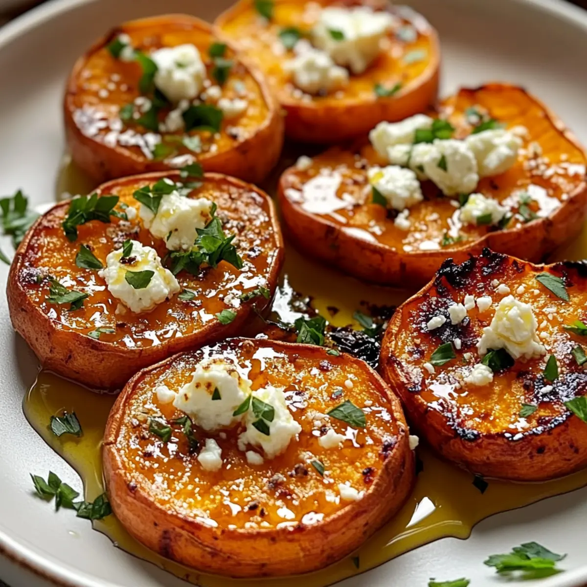 Savory Roasted Sweet Potato Rounds with Honey & Feta Bliss