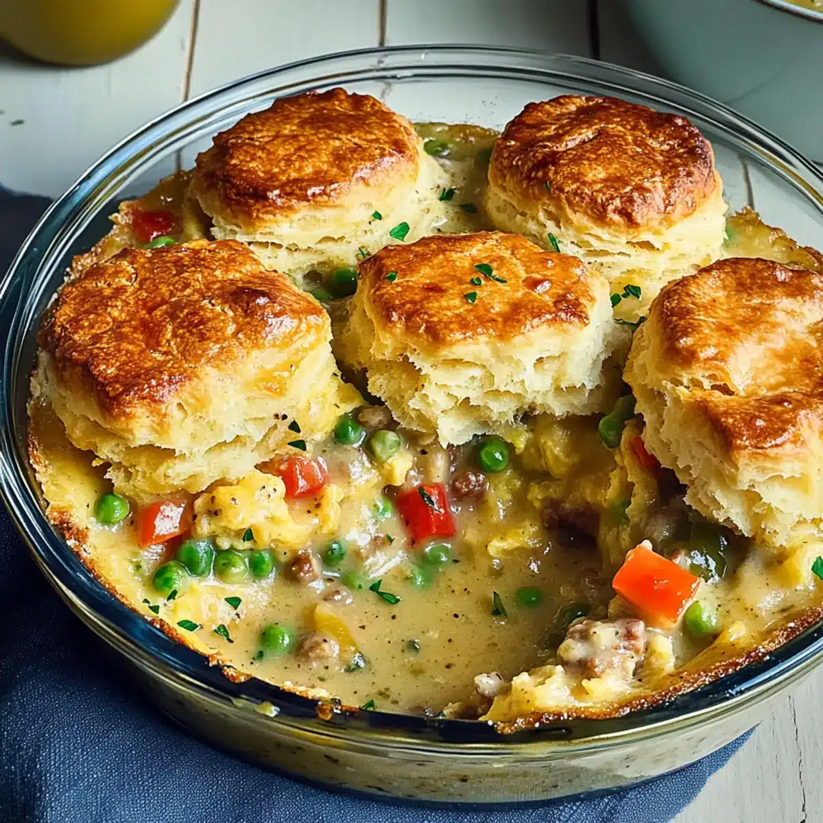 Savory Breakfast Pot Pie with Honey Butter Biscuit Bliss