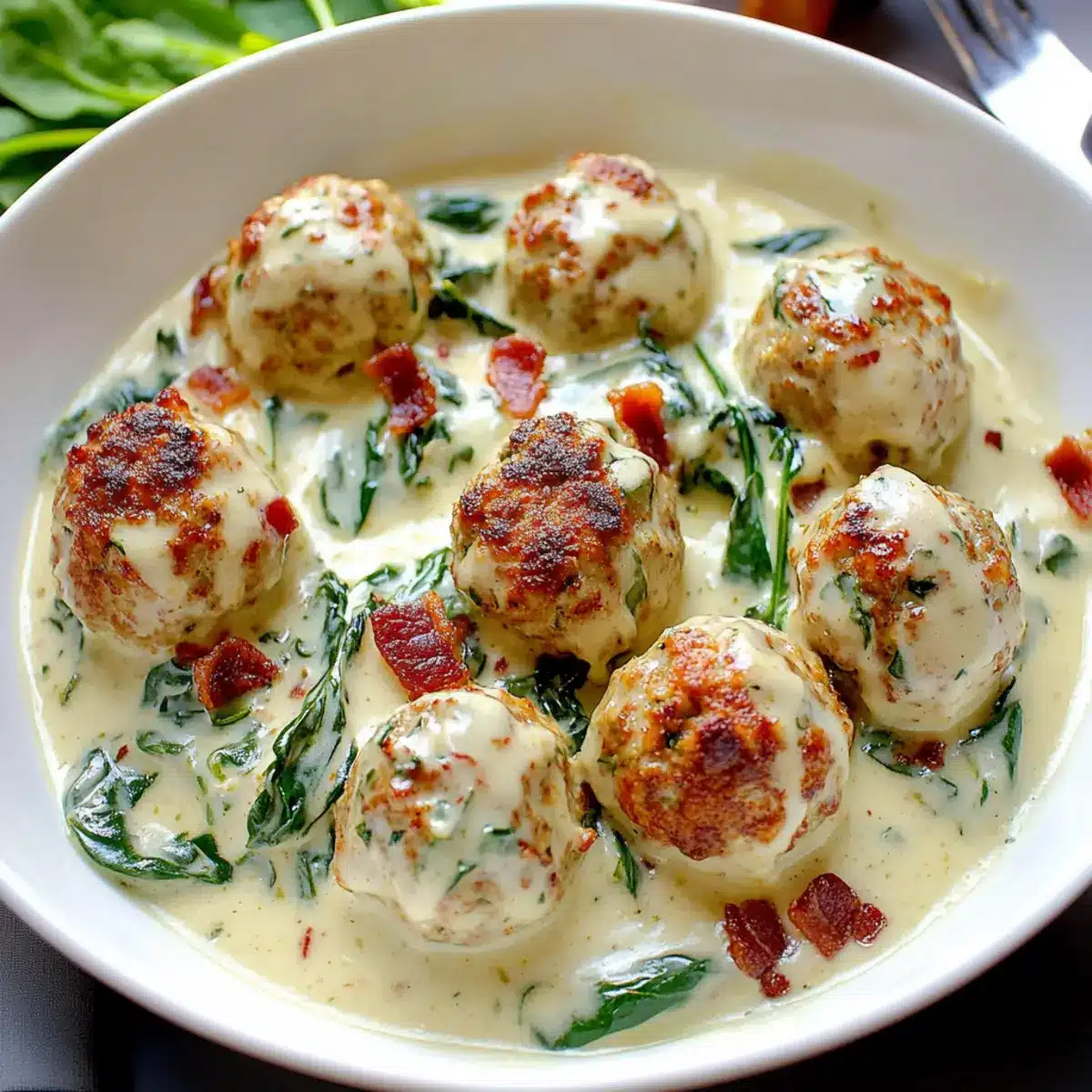 Baked Chicken Ricotta Meatballs in Creamy Alfredo Bliss