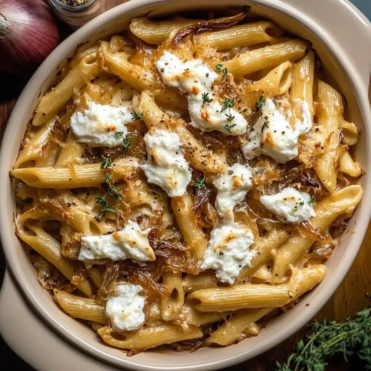 Irresistible Balsamic Onion & Goat’s Cheese Pasta Bake Delight