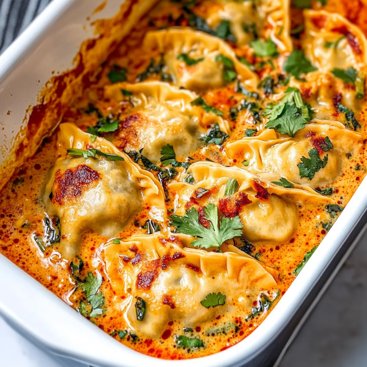 Delicious Vegan Baked Dumplings with Creamy Red Curry Sauce