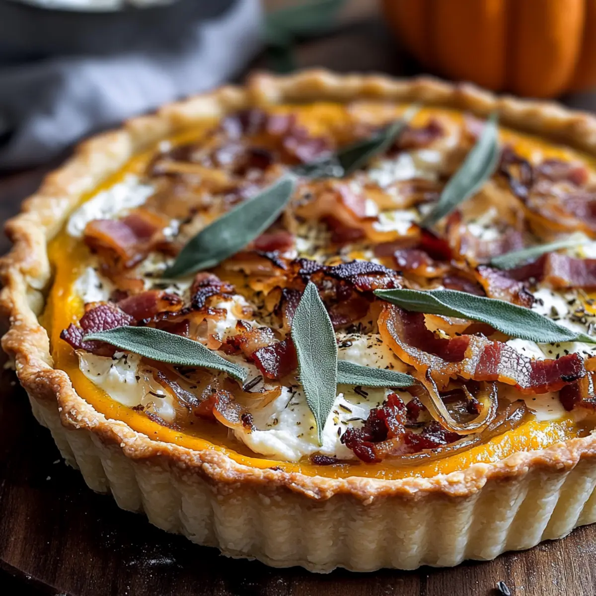 Savory Pumpkin, Ricotta & Caramelized Onion Tart with Bacon Bliss