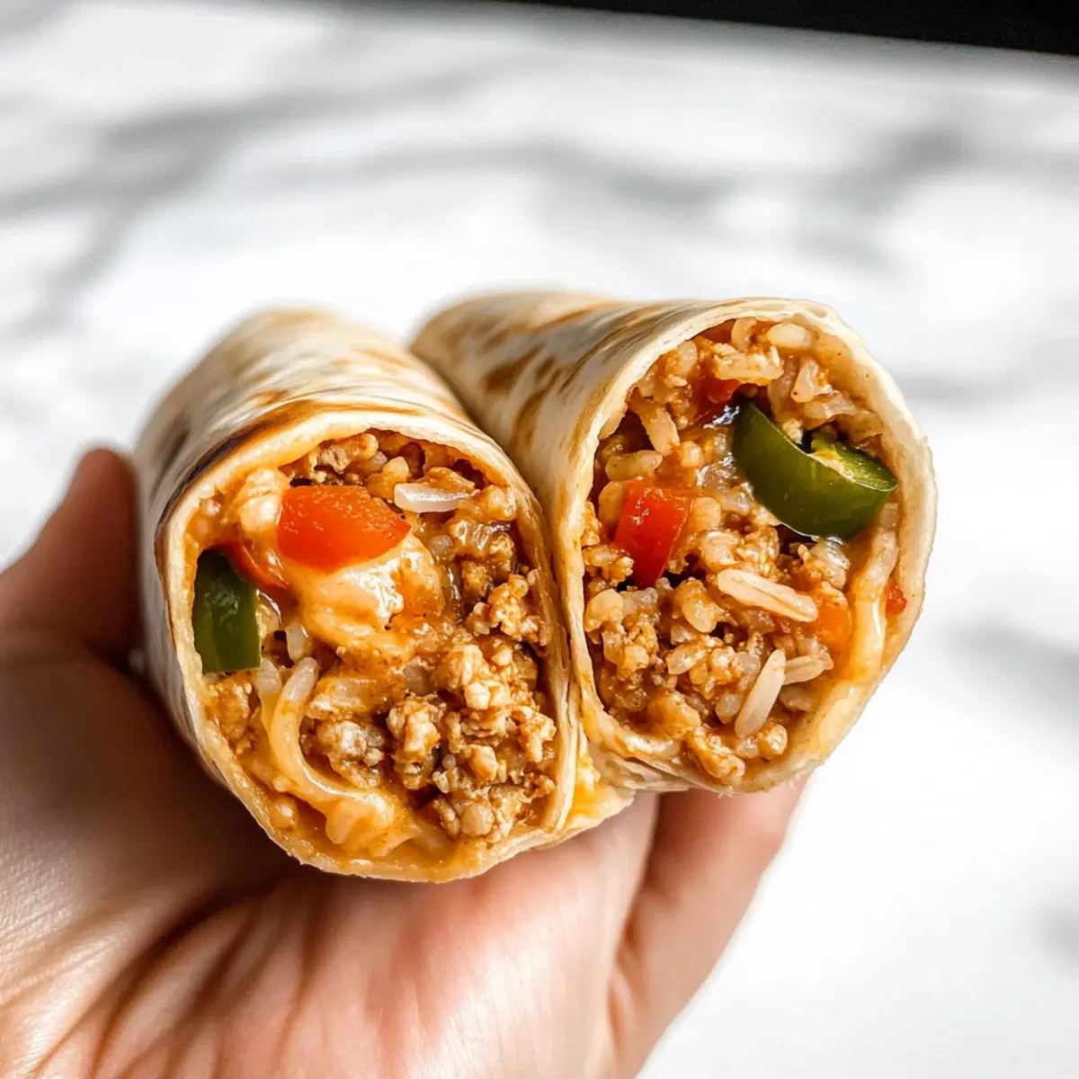 These Cheesy Ground Chicken and Rice Burritos are perfect for meal prep enthusiasts! You can prepare the filling (ground chicken, vegetables, rice, and seasonings) up to 24 hours in advance; simply refrigerate it in an airtight container to maintain freshness. Additionally, the rolled burritos can be prepped and left uncovered on a baking sheet before freezing; wrap them individually in plastic wrap for up to 3 months. When ready to serve, just heat a skillet over medium heat and toast the burritos for about 3-4 minutes on each side until golden brown and crispy. This way, you get delicious, homemade burritos with minimal effort on busy weeknights!
