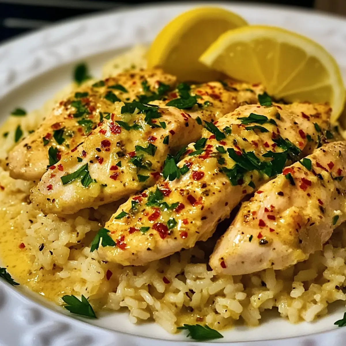 To plate, scoop a generous portion of the Garlic Parmesan Rice onto each dish and top with the juicy Chicken Scampi. Drizzle the buttery garlic sauce from the skillet over the chicken, and garnish with chopped fresh parsley for a pop of color. Consider serving with lemon wedges to add an extra zing to your delicious meal.