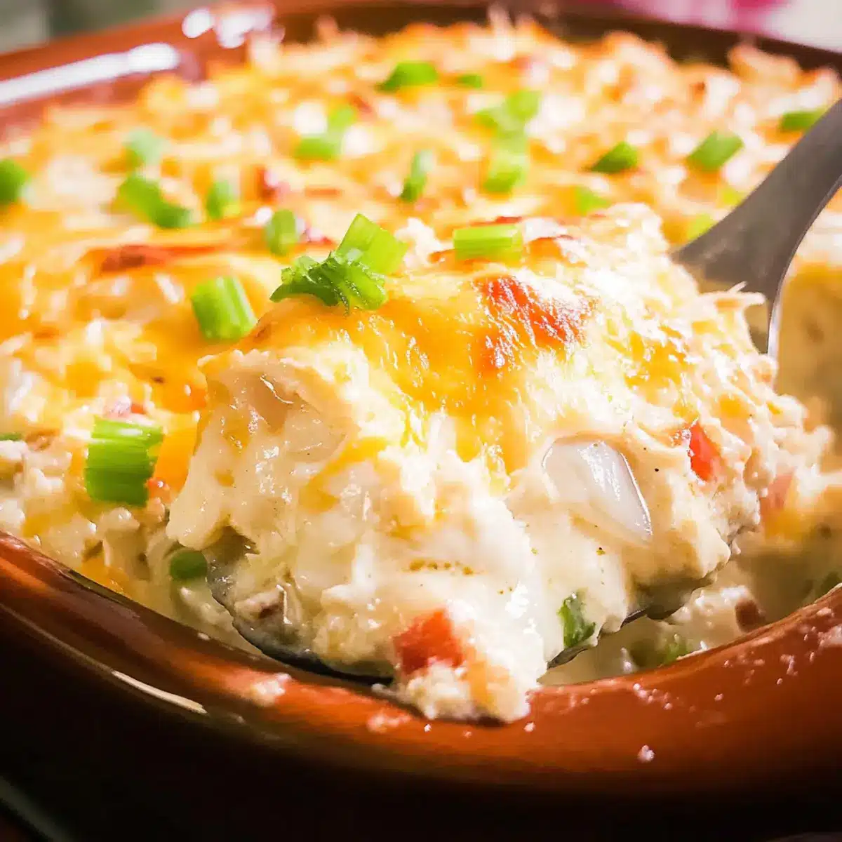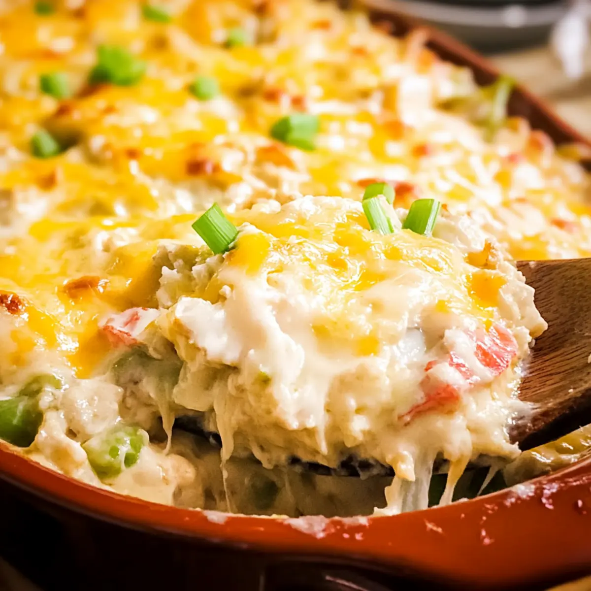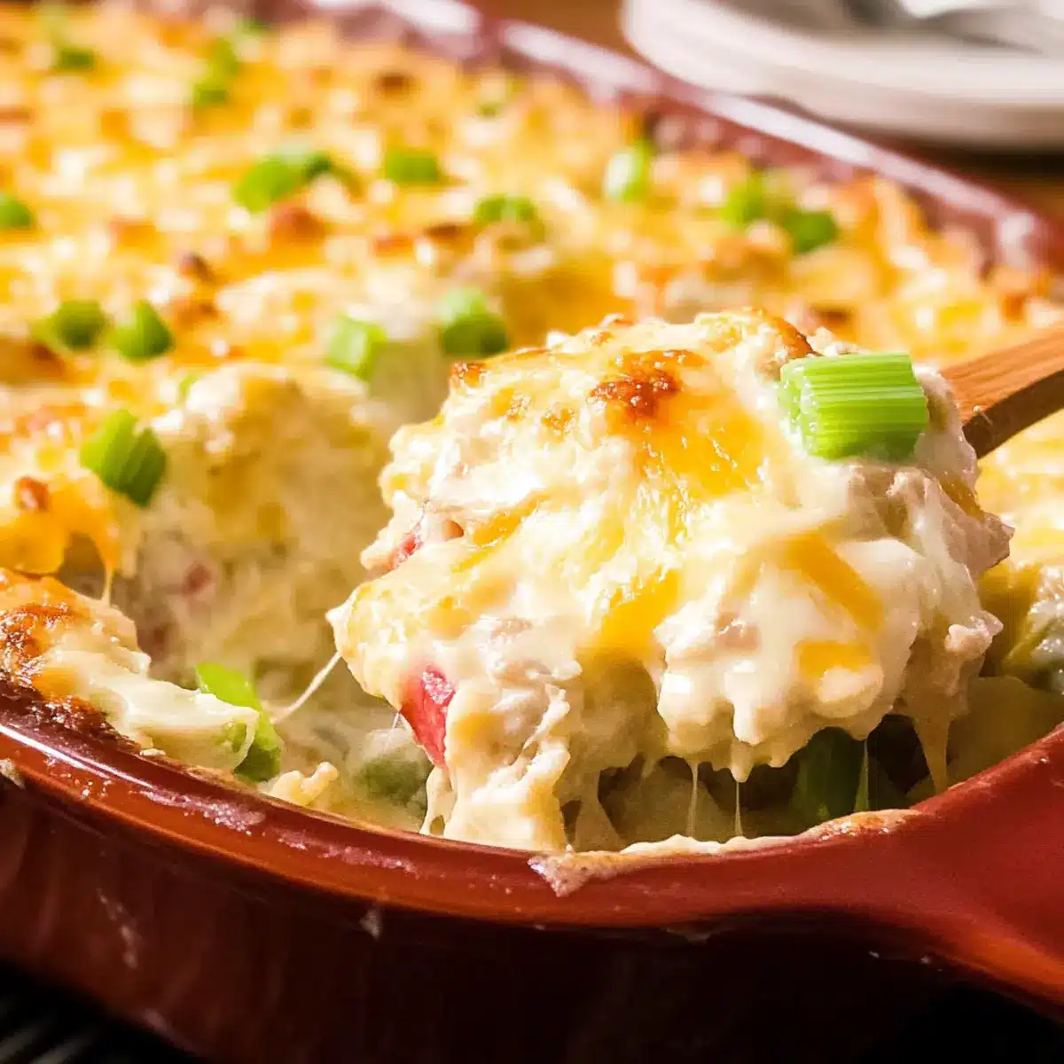 - Allow the casserole to rest for a few minutes, then garnish with green onion tops before serving warm.