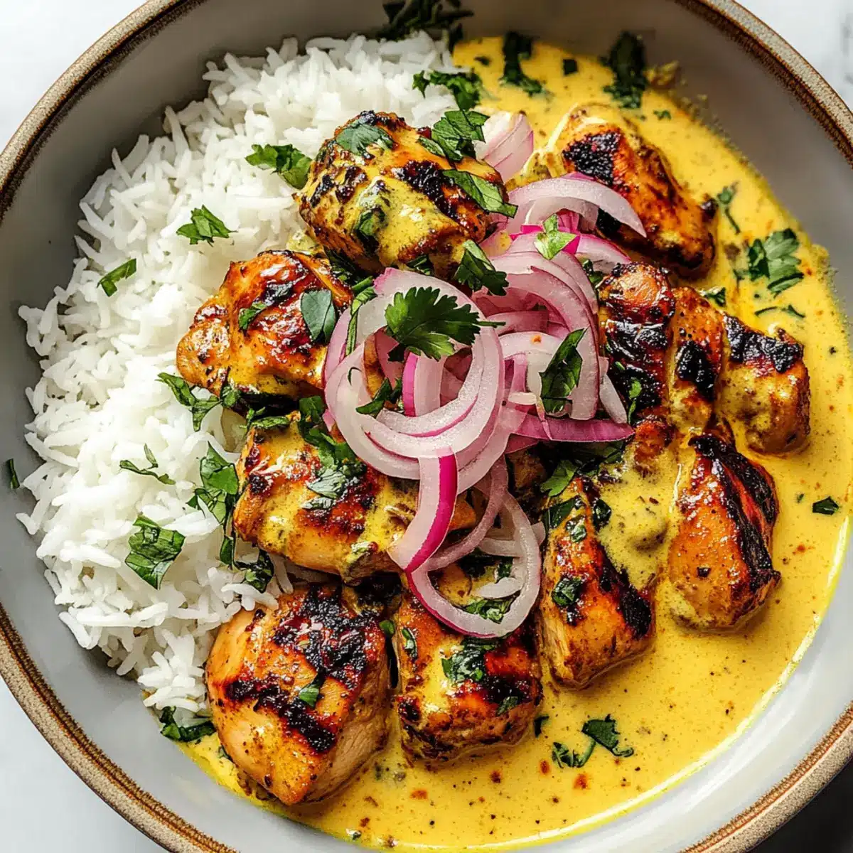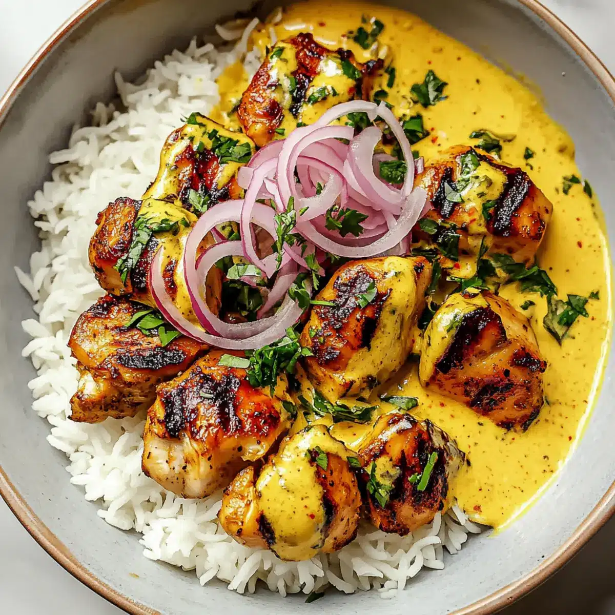 Fluffy White Rice: The classic base absorbs the creamy sauce perfectly, creating a comforting texture with every bite.