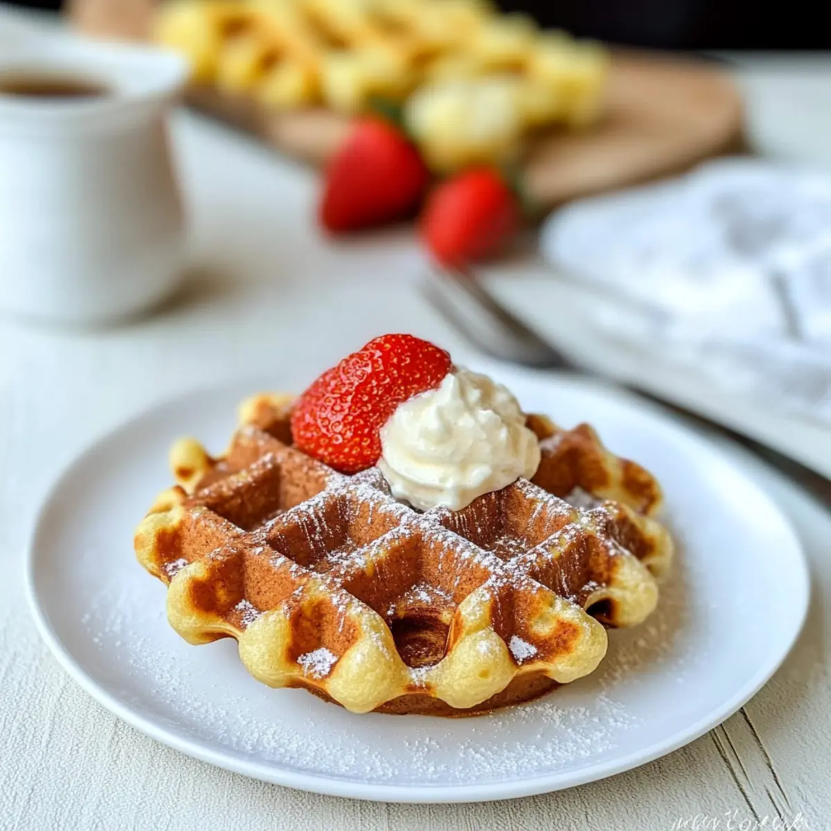 - Sweetened Whipped Cream: A dollop of this light, fluffy topping adds a creamy texture that enhances the waffles’ flavors perfectly.