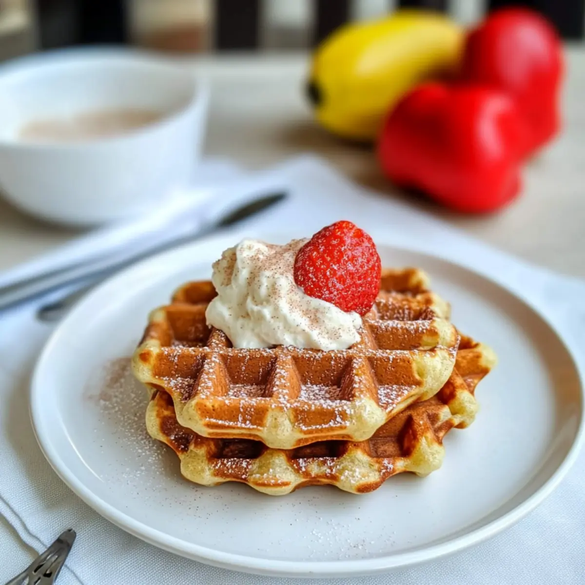 For an indulgent twist, drizzle warm syrup over your waffles for a decadent touch. The maple’s rich flavor harmonizes beautifully with the cinnamon, making each bite heavenly.