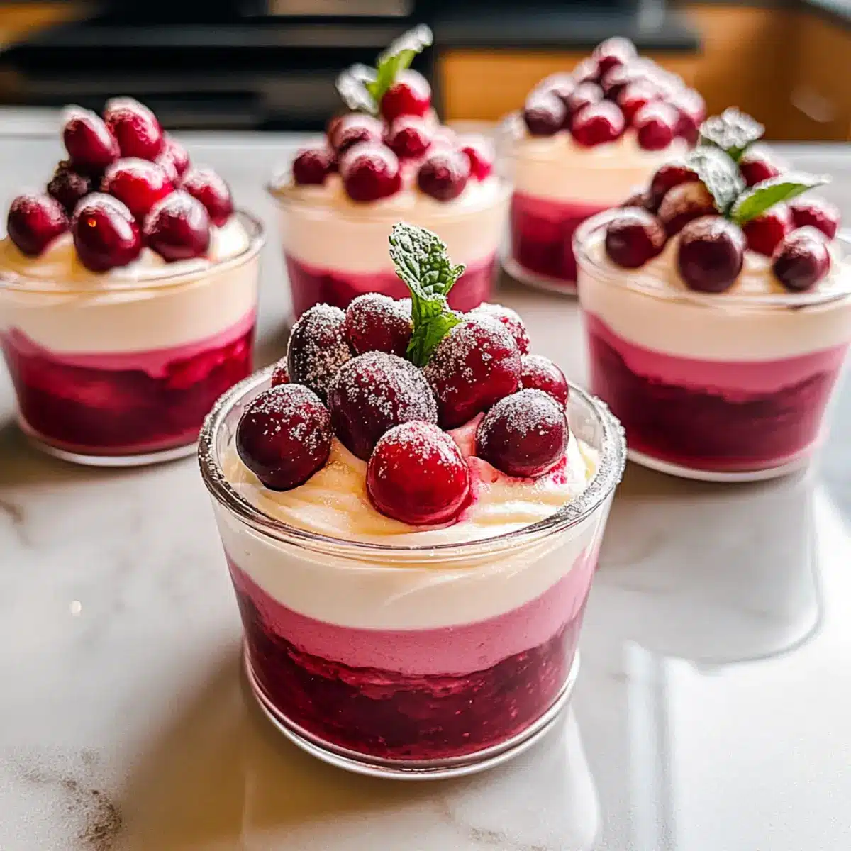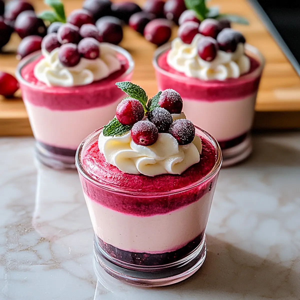 Delightful, Light Texture: Each cup boasts a fluffy vanilla mousse base that perfectly complements the tangy cranberry layer, creating a dessert that’s utterly refreshing yet satisfying.