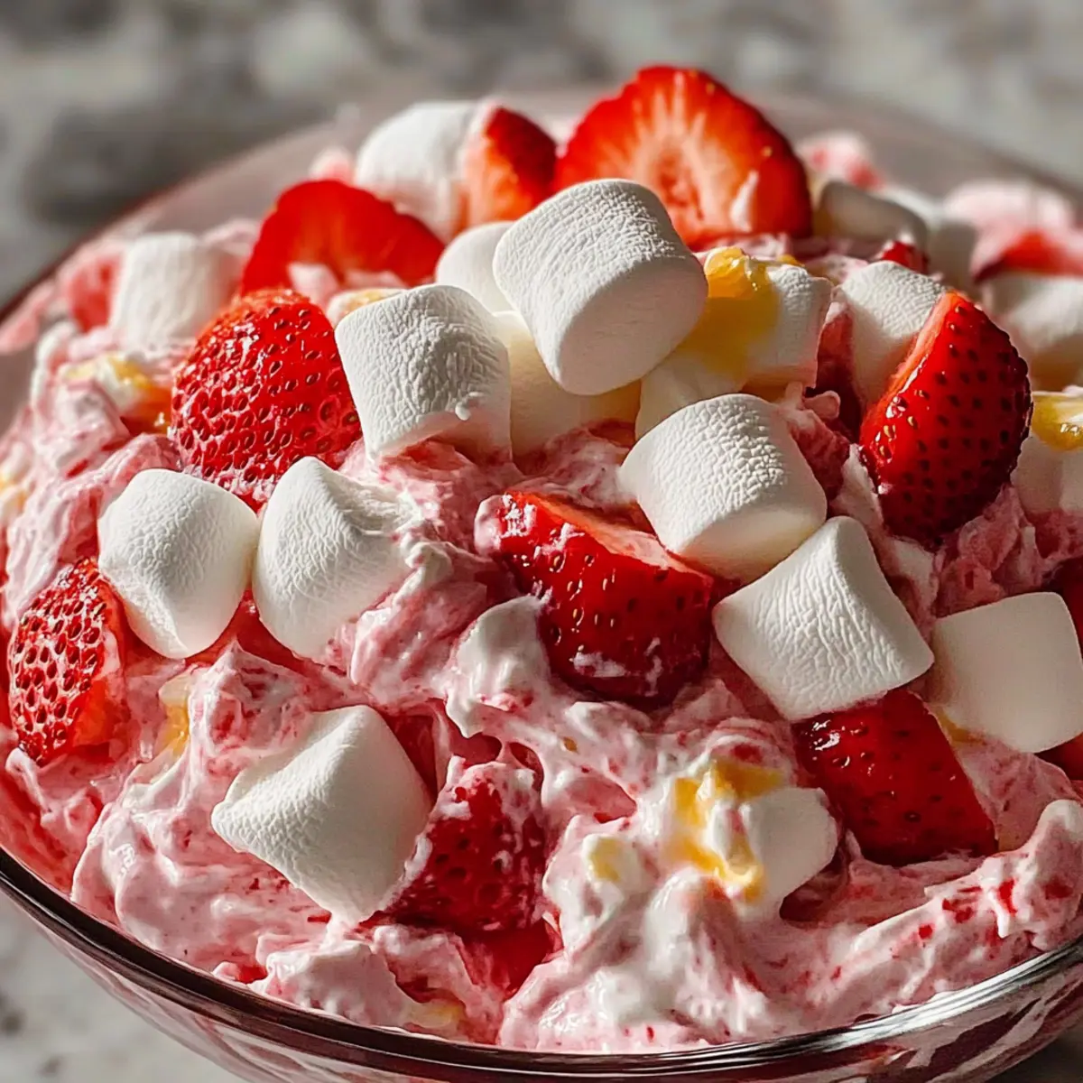 Irresistible Charm: This Creamy Strawberry Fluff is not just a dessert; it’s an experience that brings nostalgia and delight to every gathering.