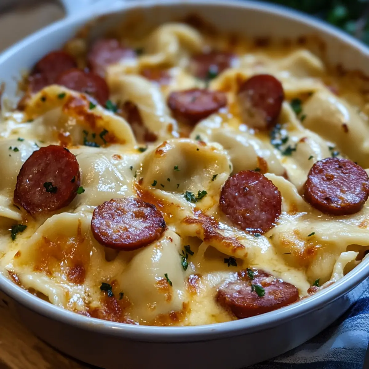 Definitely a worthy question! You can make this casserole lighter by using turkey or vegetarian kielbasa and light cream cheese for healthier options. Always check for allergies, especially since some might be allergic to dairy or gluten in the pierogies. And never share this dish with pets, as cheese and seasonings can be harmful to them.