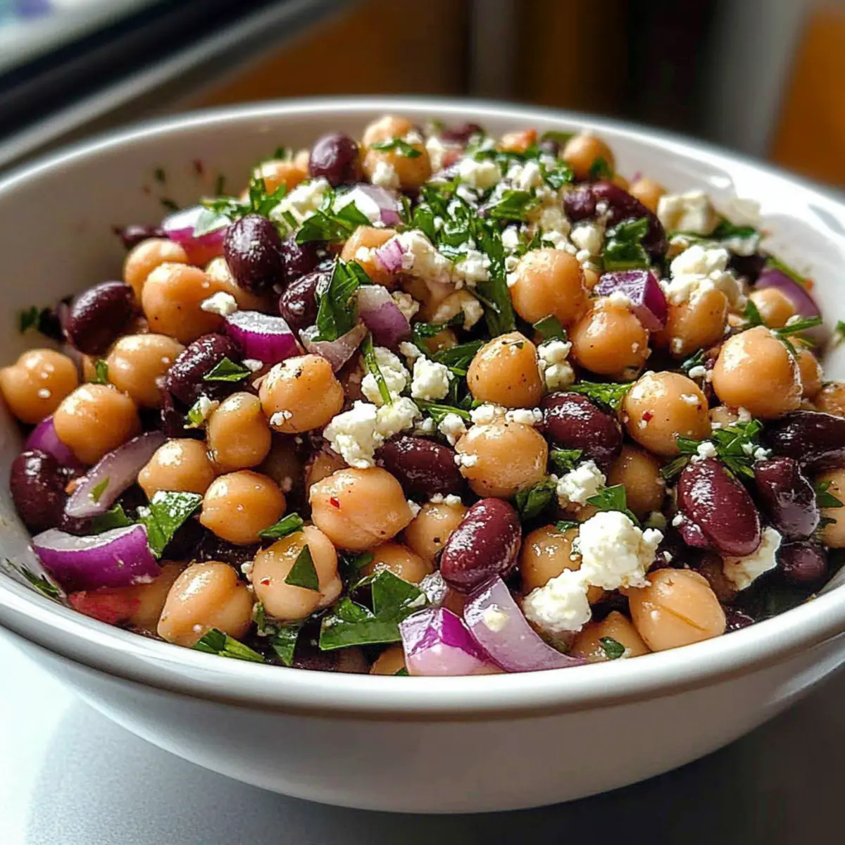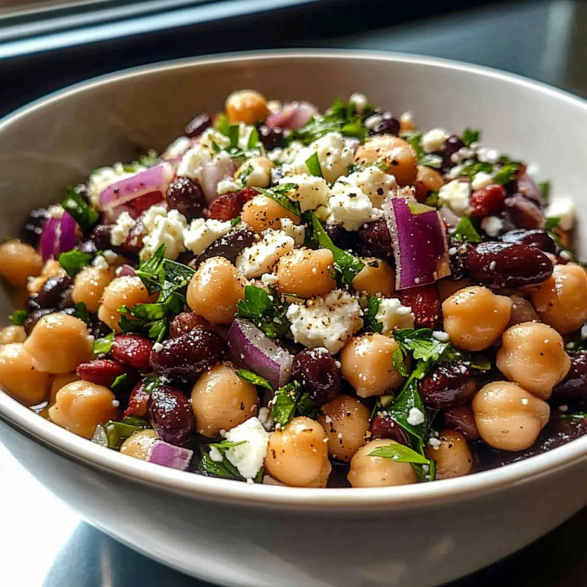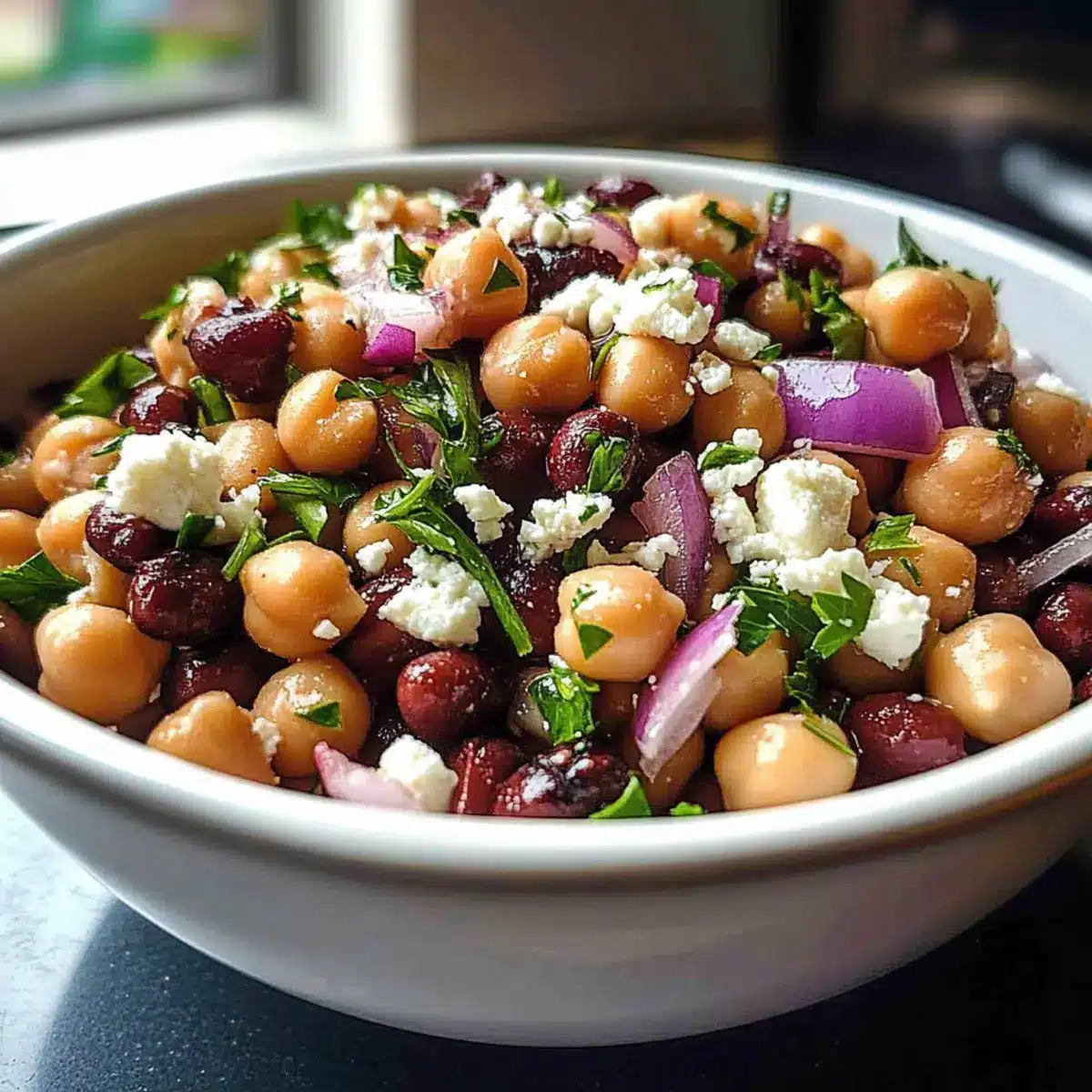 Vibrant Flavors: Each ingredient in this salad sings with flavor! The combination of chickpeas, black beans, and tangy feta creates a harmonious blend that’s both satisfying and refreshing.