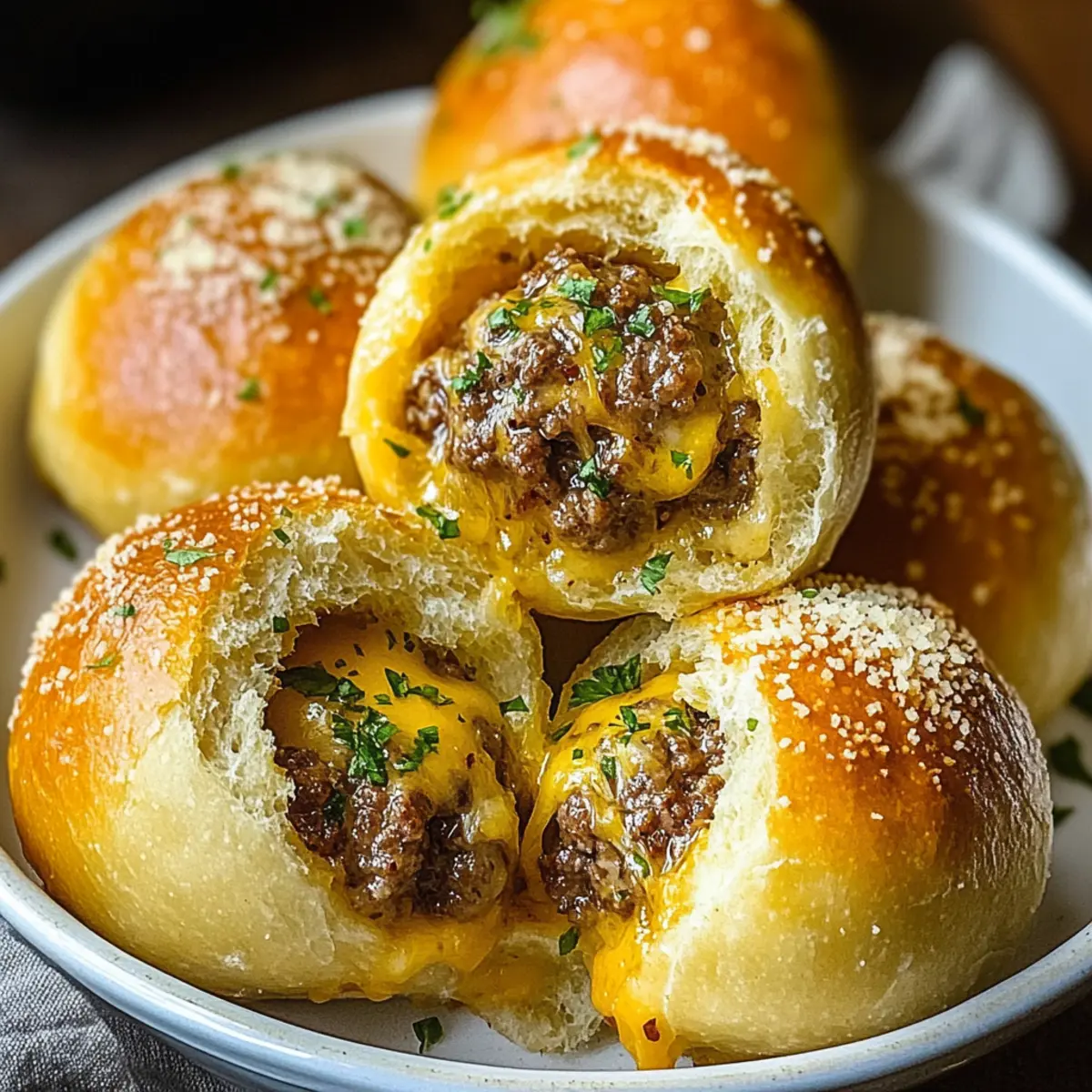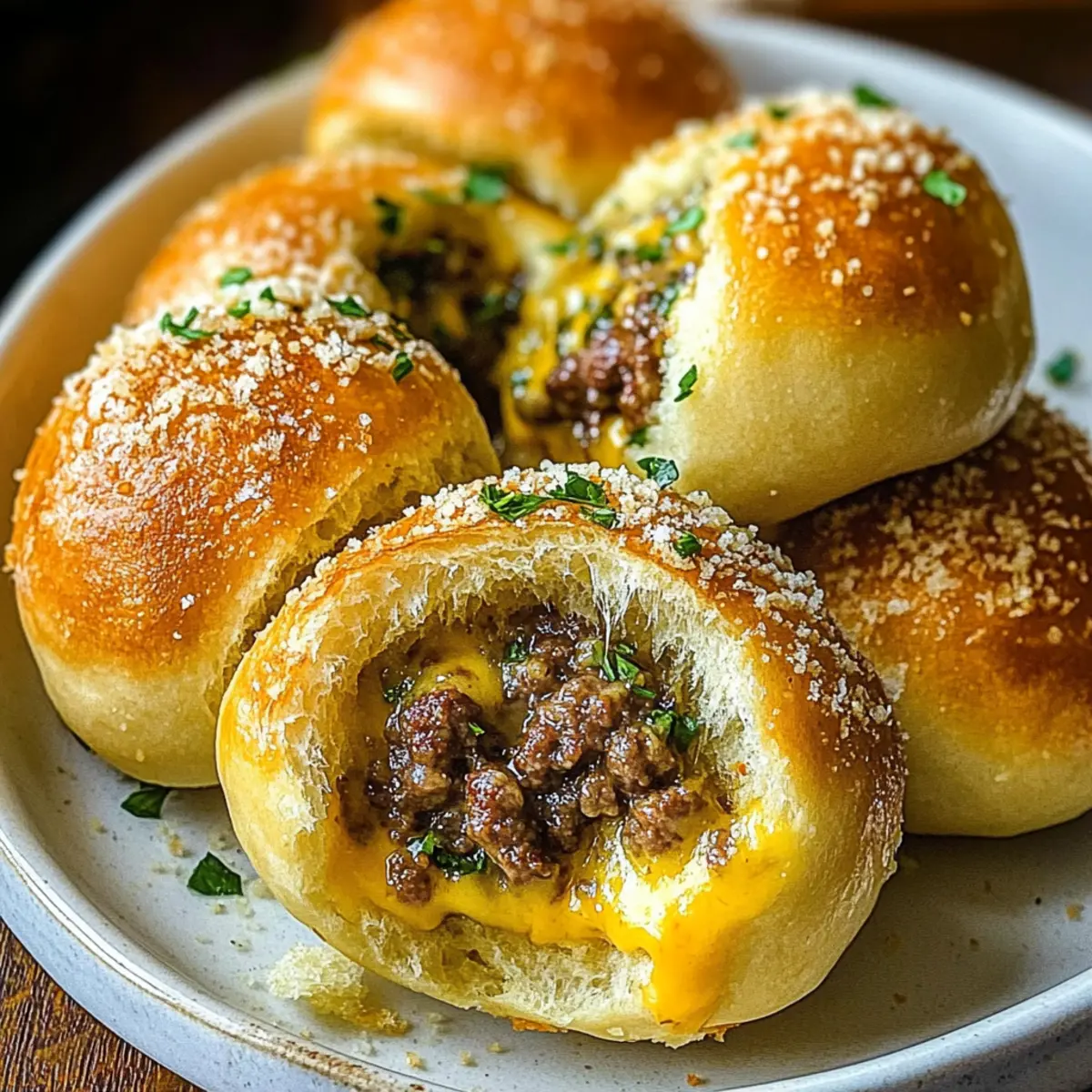 Irresistible Flavor: These bombs merge the mouthwatering taste of juicy beef and melted cheese with a delightful garlic-Parmesan crust.