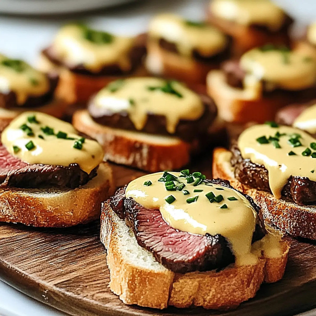 Toast It Right: Ensure the baguette slices are thoroughly toasted to prevent sogginess when topped with the beef and sauce.