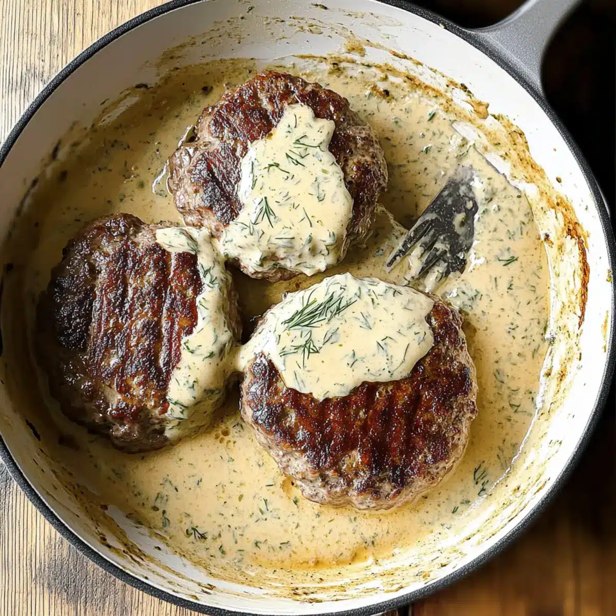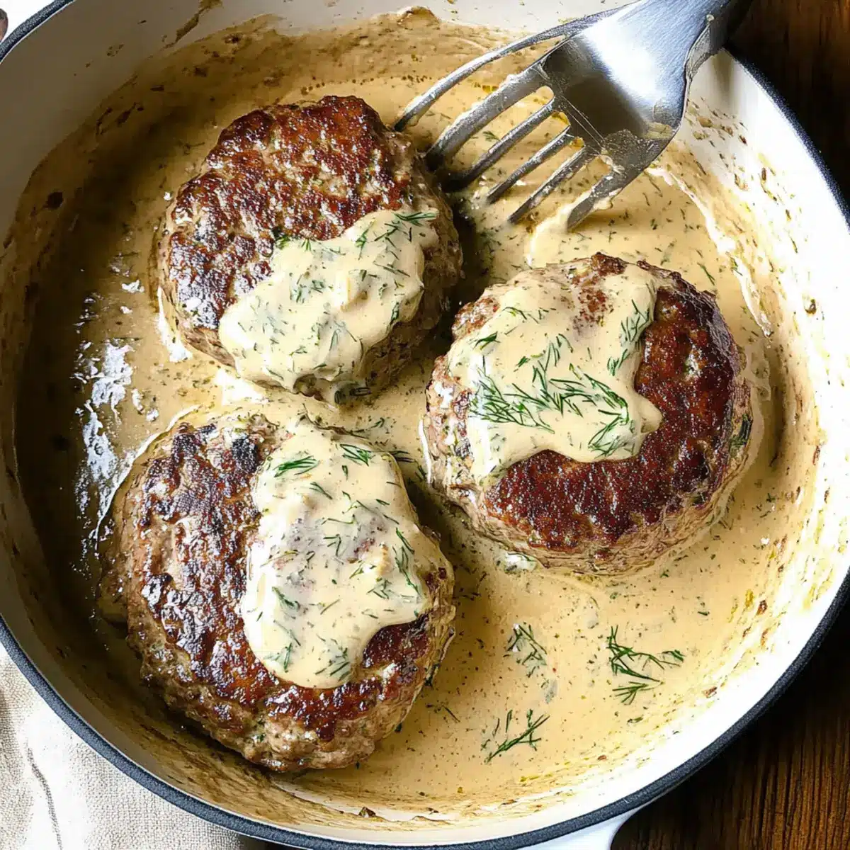 Delicious Hamburger Steaks in Creamy Dill Sauce Tonight