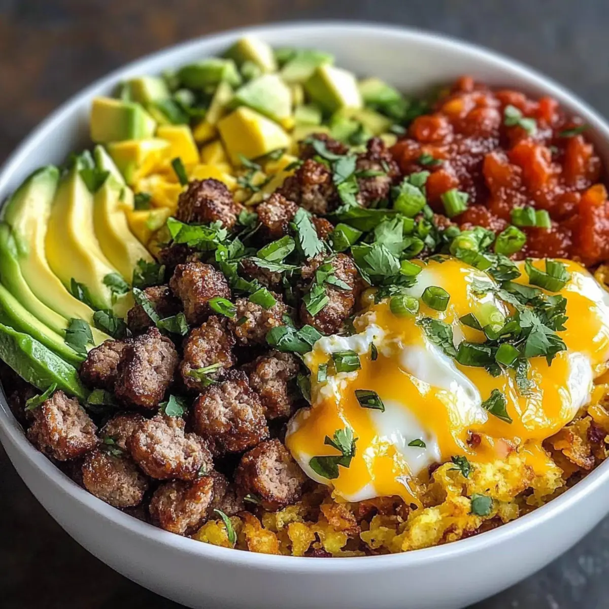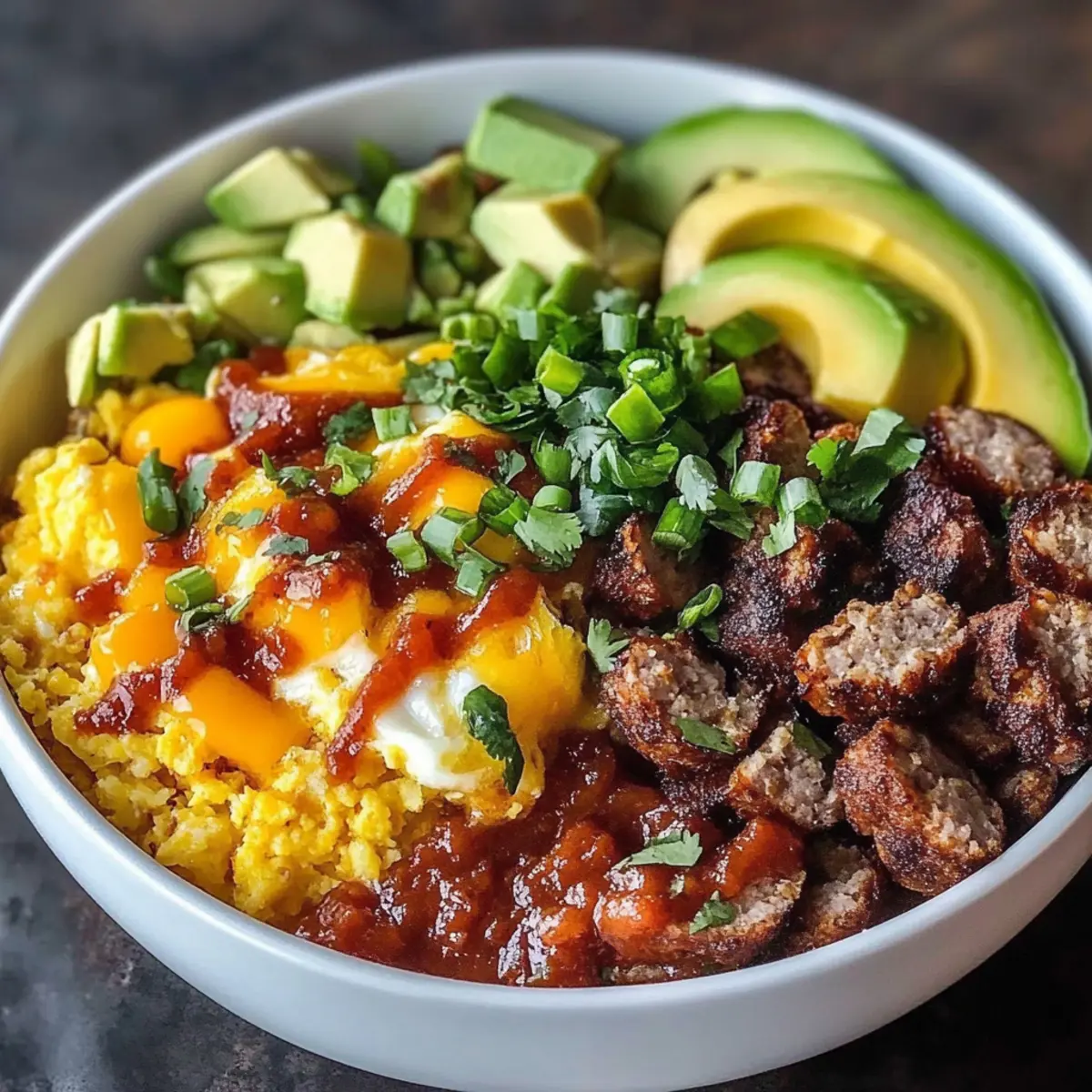 Smoky BBQ: Instead of salsa, drizzle barbecue sauce over the scrambled eggs and sausage, bringing smoky sweetness to your bowls. Pair with a side of coleslaw for a BBQ-inspired morning!