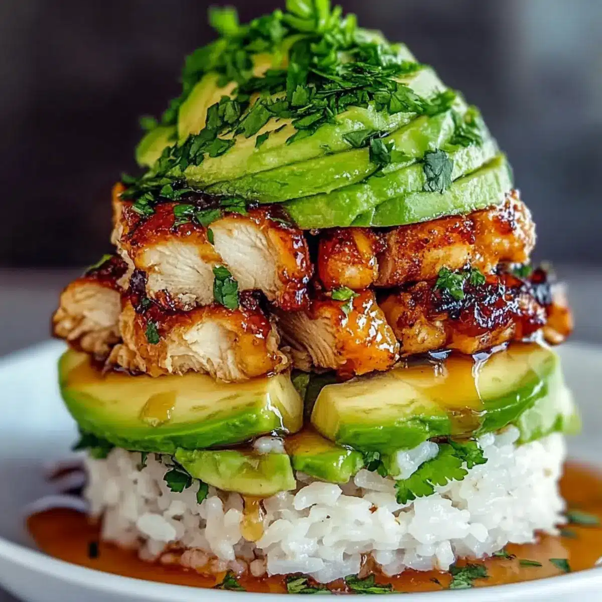 Crowd-Pleasing Presentation: The vibrant layers of rice, avocado, and chicken stack beautifully, making it an eye-catching centerpiece for dinner parties or family meals.