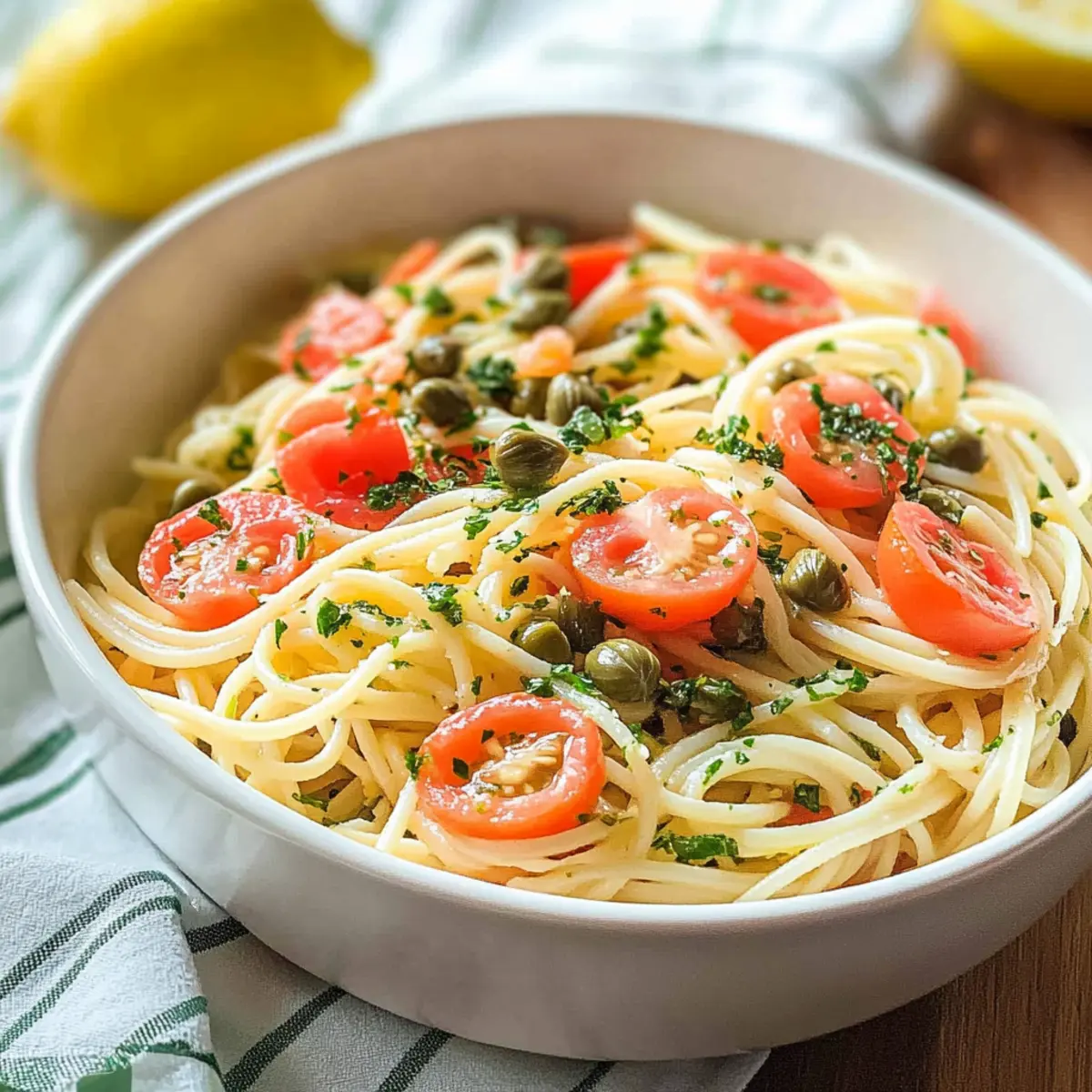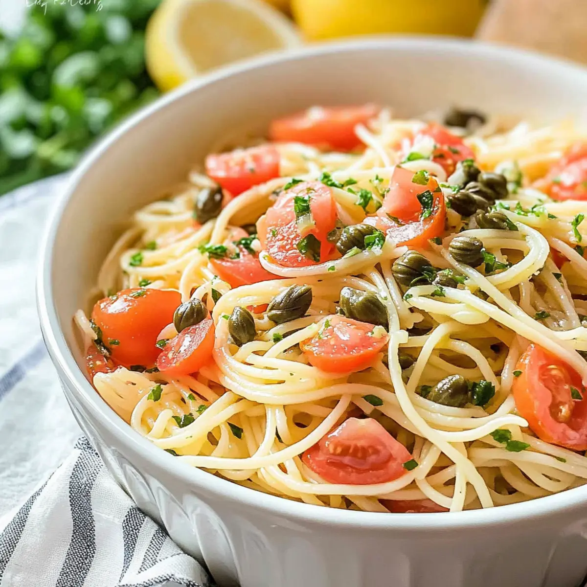 As I tossed the delicate strands of capellini, the zesty aroma of lemons filled my kitchen, instantly transporting me to a sun-drenched Italian terrace. This Lemon Capellini Salad with Fresh Tomatoes and Capers is my go-to dish for those moments when I crave something light, bright, and bursting with flavor. Not only does it come together in just 15 minutes, making it perfect for busy weeknights or last-minute gatherings, but it’s also an incredibly versatile side that pairs beautifully with grilled meats or stands on its own as a light meal. Imagine enjoying a refreshing pasta salad that captures the essence of summer, all year round! Ready to elevate your culinary repertoire? Let’s dive in!