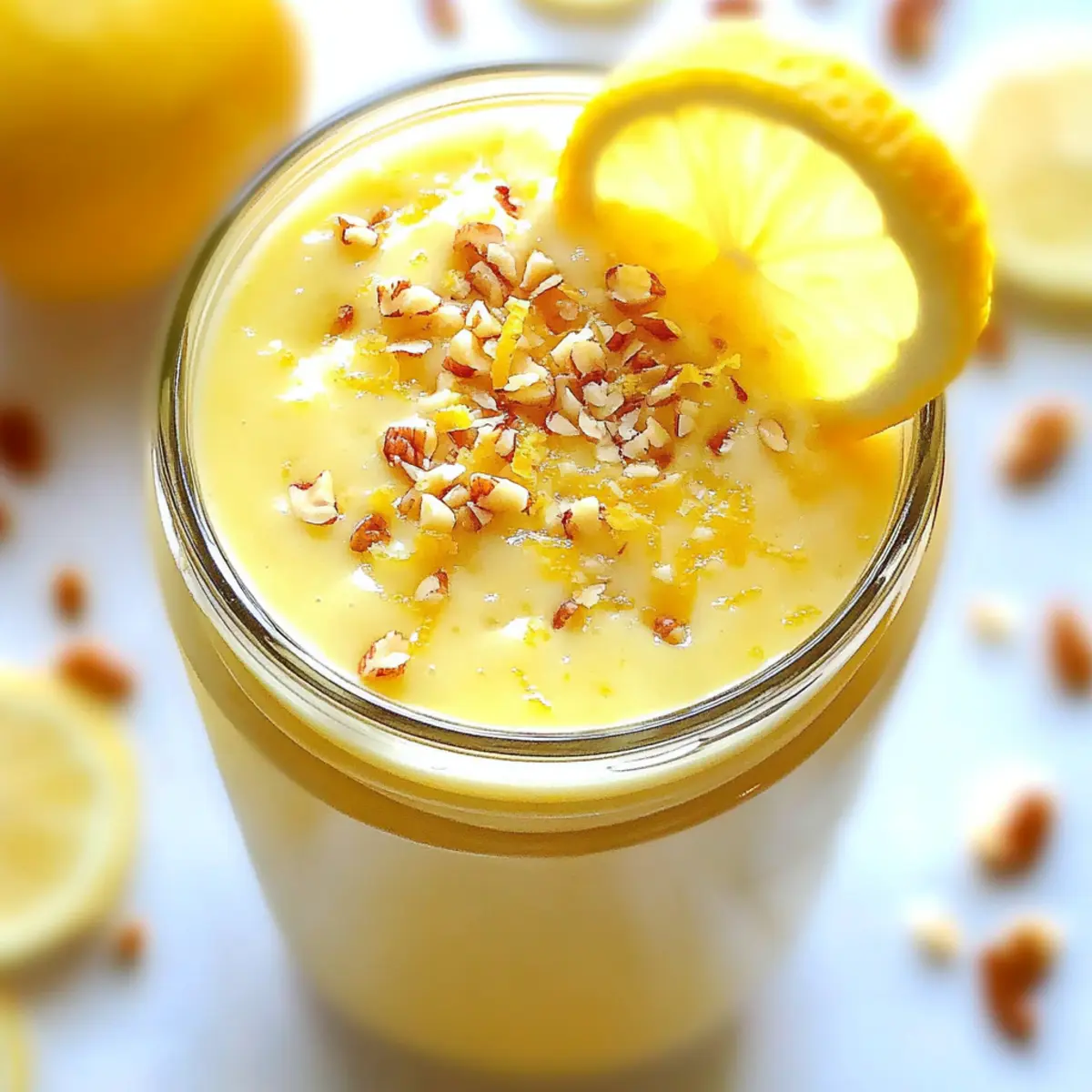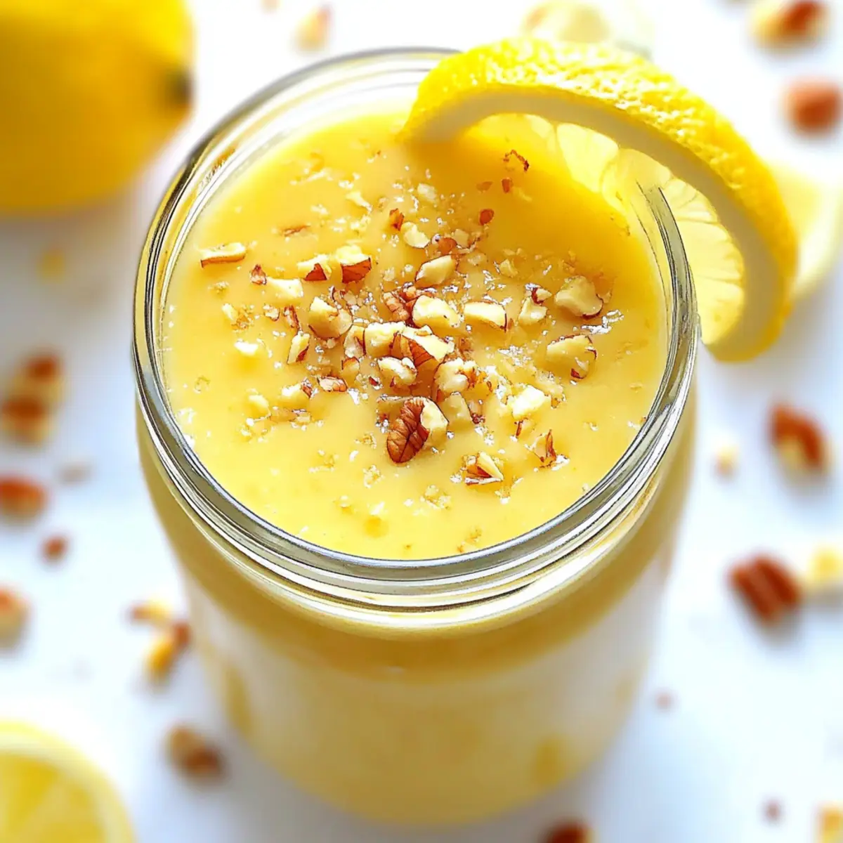 Pour the creamy Lemon Cheesecake Smoothie into your favorite glasses, watching as the bright yellow hue invites you in. For an added crunch, sprinkle chopped pecans on top and enjoy the delightful contrast, transforming this smoothie into a truly indulgent yet healthy treat!