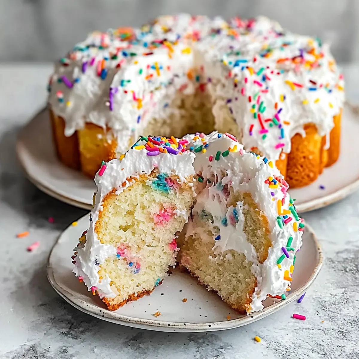 Light, Fluffy Texture: This Funfetti Angel Food Cake offers an airy consistency that’s like biting into a cloud, making it a delightful alternative to heavy traditional cakes.