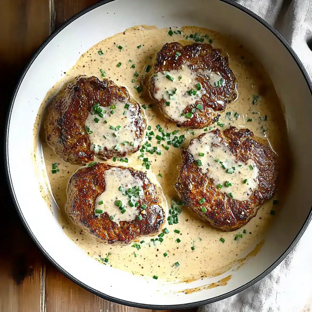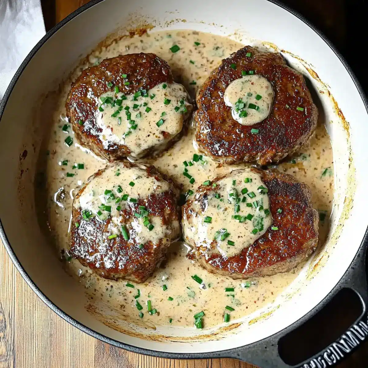 Return the seared patties to the skillet, gently nestling them in the creamy sauce. Simmer for about 5 minutes, allowing the flavors to meld together, ensuring the patties are heated through and absorb the rich sauce. This step will transform your dish into a comforting classic.