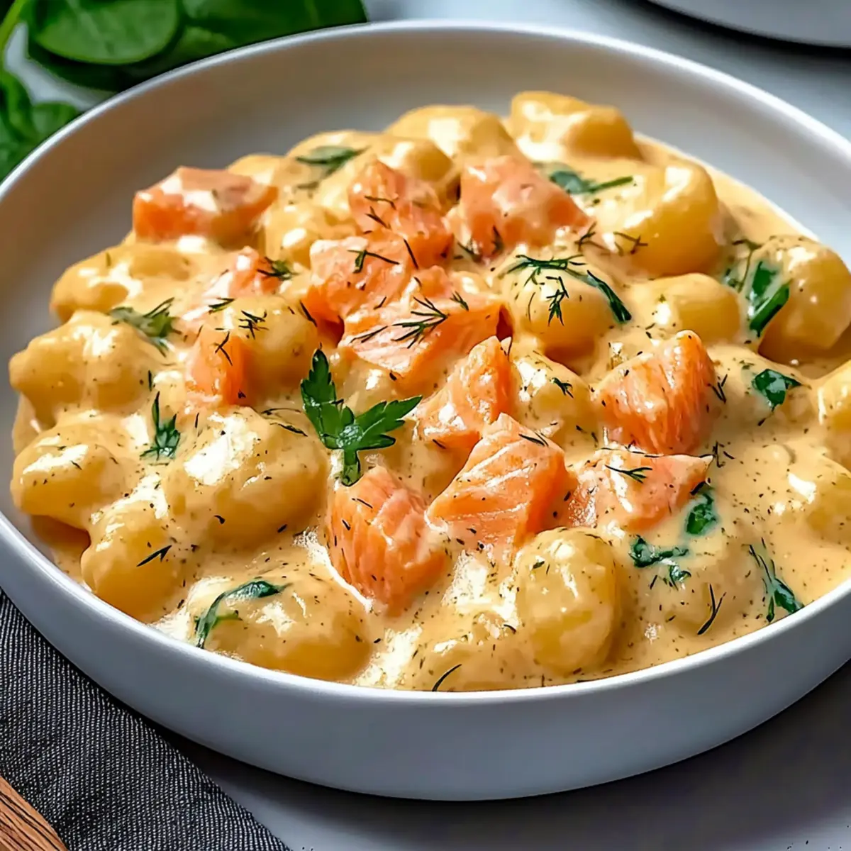 Absolutely! While fresh dill pairs beautifully with the salmon, you can substitute it with fresh parsley or basil for a different herbaceous flavor. This versatility allows you to adapt the smoked salmon gnocchi to match your personal taste preferences!