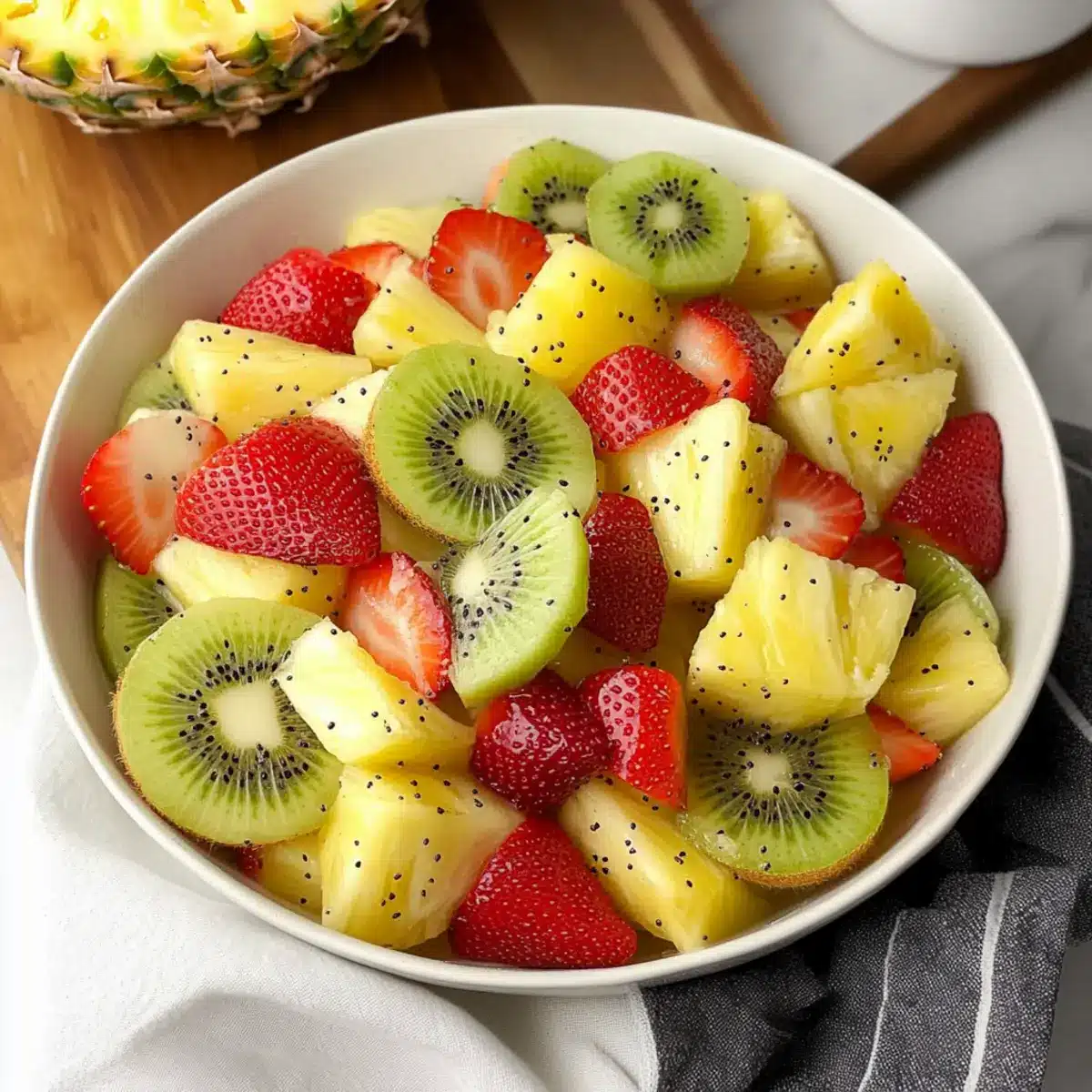 Tropical Twist: Swap out kiwi for ripe mango or papaya slices to emphasize a tropical vibe. These fruits bring a luscious sweetness that pairs exquisitely with the poppy seed dressing.