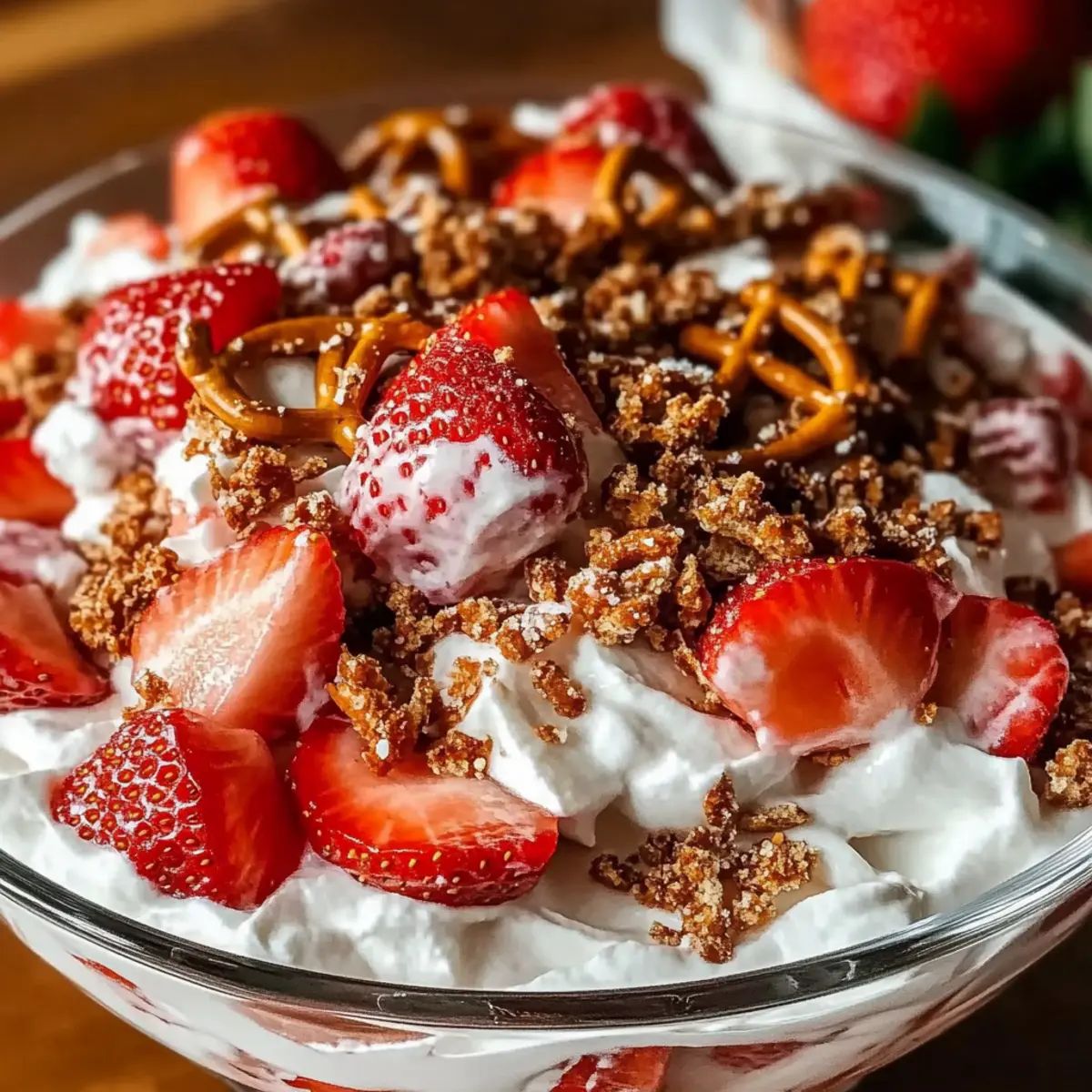 Cinnamon Sugar Dust: Dust the pretzel mixture with cinnamon before baking for a warm, aromatic flavor that complements the strawberries perfectly. It brings a cozy touch to your salad.