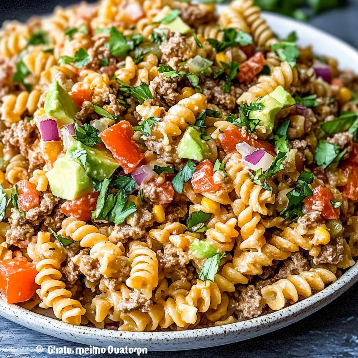 Unforgettable Flavor Explosion: This salad is a vibrant mix of zesty taco spices and creamy pasta that will wow your taste buds.