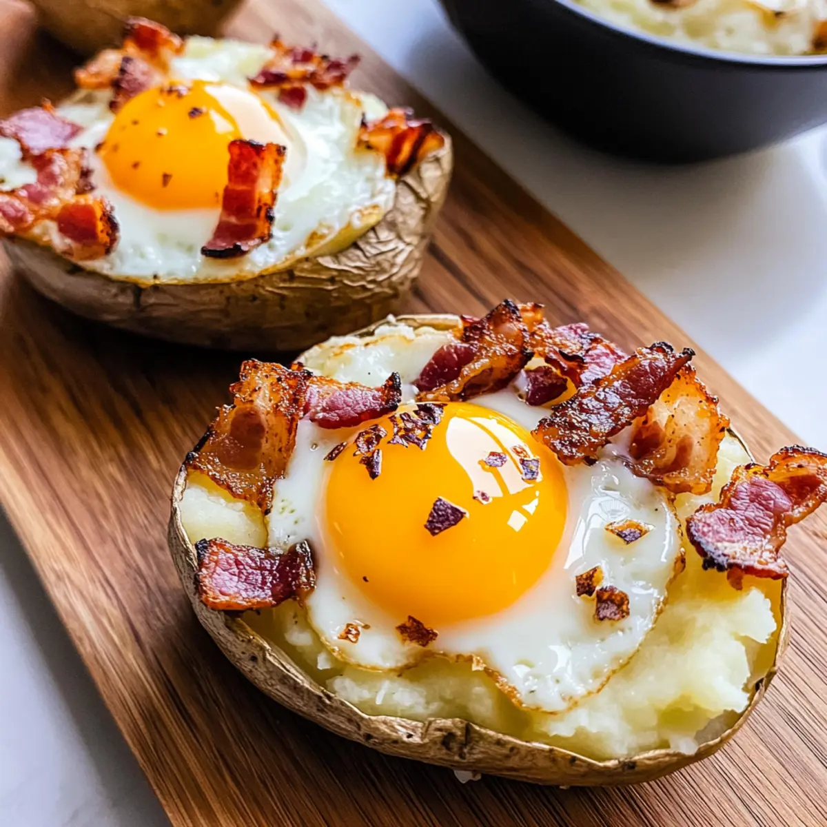These Twice-Baked Breakfast Potatoes are ideal for meal prep, allowing you to enjoy a delicious breakfast even on your busiest mornings. You can prepare the potatoes up to 24 hours ahead by baking and hollowing them out, then storing the skins in the refrigerator. The creamy filling can also be made the day before and kept chilled until you’re ready to assemble. When you’re ready to serve, simply fill the potato skins with the prepared filling, add the bacon, cheese, and egg, then bake at 375°F (190°C) for 15–20 minutes until the eggs are set. This way, you’ll have a comforting, hearty breakfast with minimal effort!