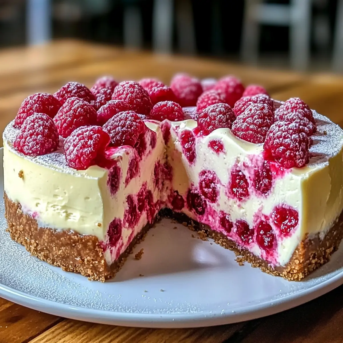 Decadent Layers: This White Chocolate Raspberry Cheesecake features a luxurious creaminess that delights the senses with every bite.
